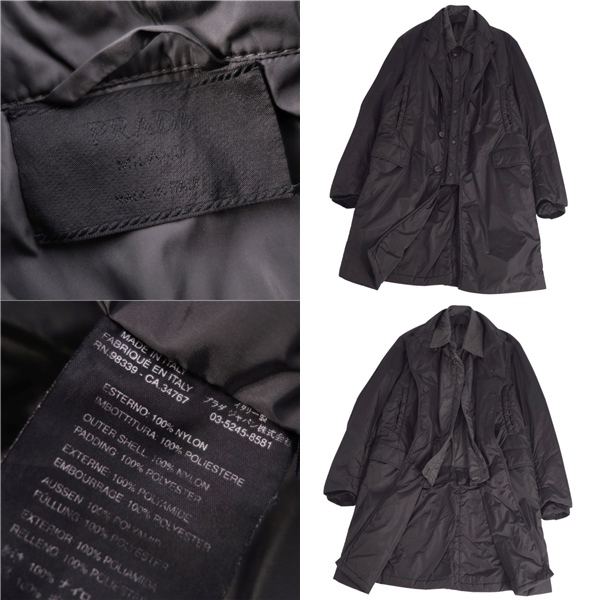 | 美品 プラダ PRADA コート ロングコート 中綿入り アウター メンズ イタリア製 L ブラック |