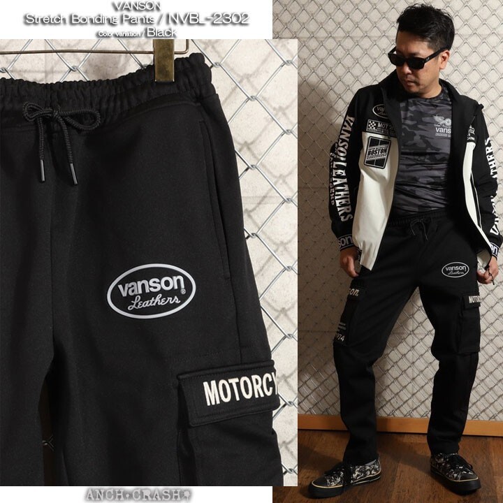 VANSON バンソン ストレッチボンディングパンツ NVBL-2302 ブラック Lサイズ 裏ワッフル 防風 撥水 保温