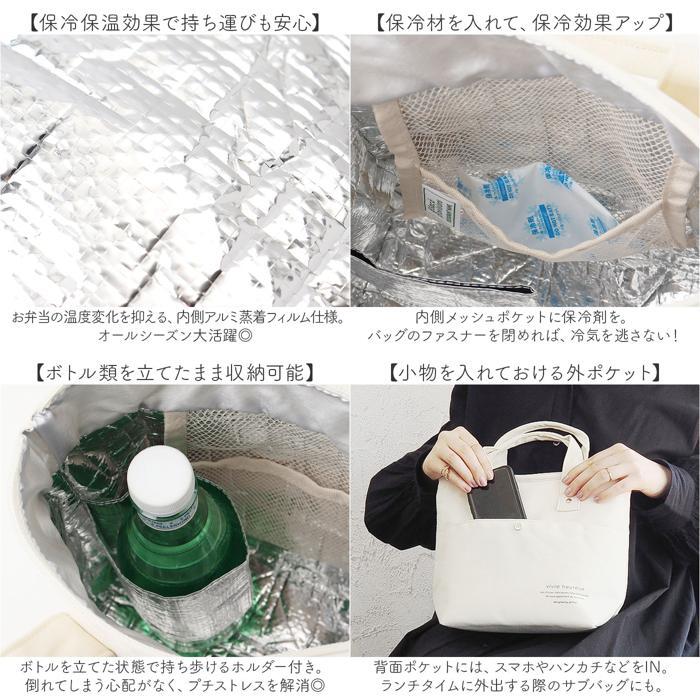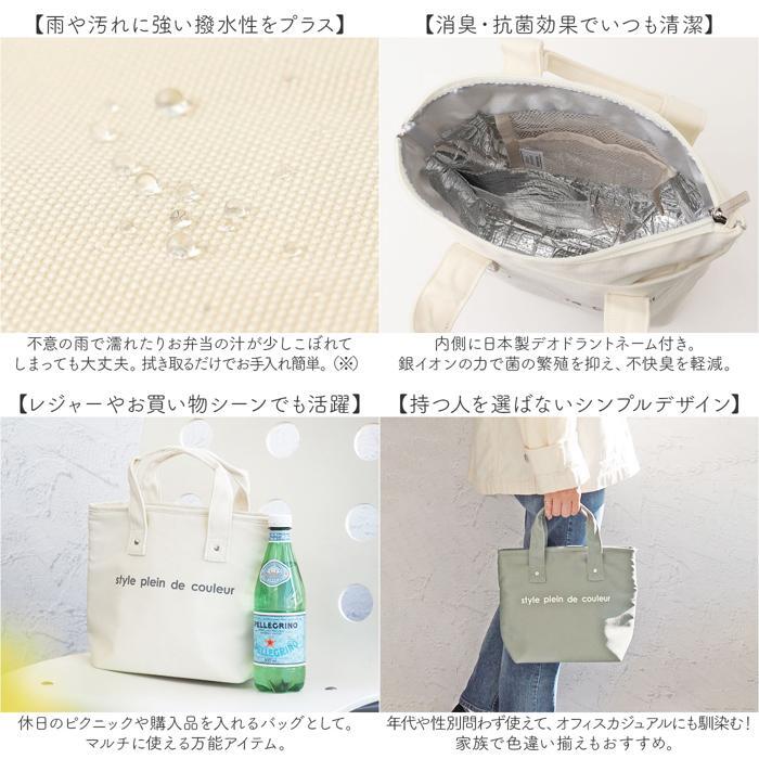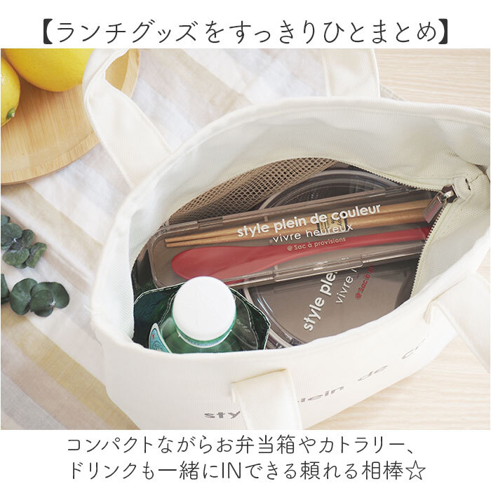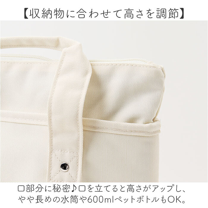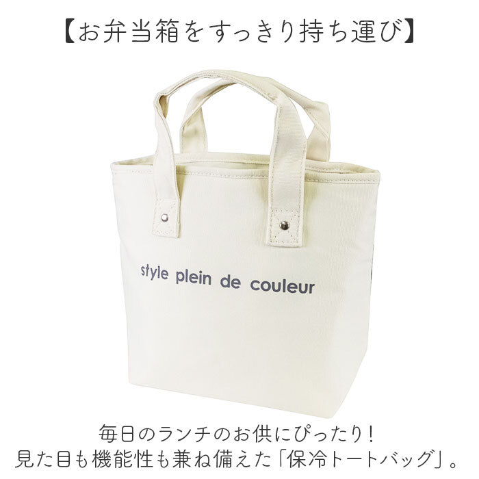 | 商品説明 | ・・【お弁当箱をすっきり持ち運び】 ・毎日のランチのお供にぴったり!見た目も機能性も兼ね備えた「保冷トートバッグ」。 ・【ランチグッズをすっきりひとまとめ】 ・コンパクトながらお弁当箱やカトラリー、ドリンクも一緒にINできる頼れる相棒☆ ・【収納物に合わせて高さを調節】 ・口部分に秘密♪口を立てると高さがアップし、やや長めの水筒や600mlペットボトルもOK。 ・【開閉スムーズ、安心のファスナー式】 ・ガバっと開いて取り出しやすく、ファスナーを閉じれば中身の飛び出しをガード。 ・【保冷保温効果で持ち運びも安心】 ・お弁当の温度変化を抑える、内側アルミ蒸着フィルム仕様。オールシーズン大活躍◎ ・【保冷材を入れて、保冷効果アップ】 ・内側メッシュポケットに保冷剤を。バッグのファスナーを閉めれば、冷気を逃さない! ・【ボトル類を立てたまま収納可能】 ・ボトルを立てた状態で持ち歩けるホルダー付き。倒れてしまう心配がなく、プチストレスを解消◎ ・【小物を入れておける外ポケット】 ・背面ポケットには、スマホやハンカチなどをIN。ランチタイムに外出する際のサブバッグにも。 ・【雨や汚れに強い撥水性をプラス】 ・不意の雨で濡れたりお弁当の汁が少しこぼれてしまっても大丈夫。拭き取るだけでお手入れ簡単。 ・(※)完全防水ではありません。 ・【消臭・抗菌効果でいつも清潔】 ・内側に日本製デオドラントネーム付き。銀イオンの力で菌の繁殖を抑え、不快臭を軽減。 ・【レジャーやお買い物シーンでも活躍】 ・休日のピクニックや購入品を入れるバッグとして。マルチに使える万能アイテム。 ・【持つ人を選ばないシンプルデザイン】 ・年代や性別問わず使えて、オフィスカジュアルにも馴染む!家族で色違い揃えもおすすめ。 ・【ポケット仕様】 ・内側:メッシュポケット×1、ボトルホルダー×1 ・背面:スナップボタン式ポケット×1 |