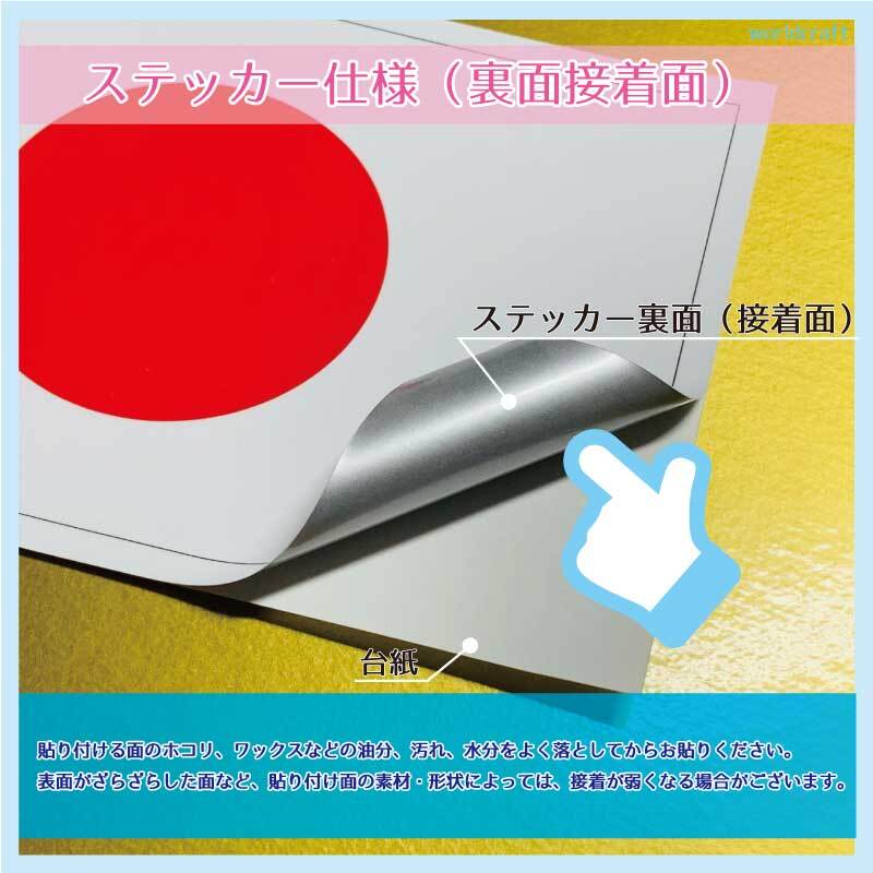 国旗ステッカー Sサイズ 2枚セットです ☆ 業務用溶剤インクを使用した 雨や直射日光に強い じょうぶな耐水ステッカー! 屋外OK! 耐水(防水)・耐候仕様です。 車やスーツケースのワンポイントに、ノートPCなどにもペタリとどうぞ! ■サイズ:縦約 5cm × 横約 7.5cm ICカードやクレジットカードより少し小さいくらいの大きさです。 ■枚数:2枚セット 耐水・屋外耐候 塩ビシート仕様 Made in JAPAN ・ 日本製 □□□□□□□□□□□□□□□□□□□□□□□□□□□□□□□□□□ ご希望サイズ・仕様が出品されていない場合は、質問欄にてお問い合わせください。新たに出品いたします。落札後のサイズ変更はできません。必ずご希望のサイズ・仕様にて落札ください。 別サイズ(こちらは1枚の価格です) SS・縦 3.3cm × 横 5cm ステッカー仕様 2枚セット 580円 M・縦 8cm × 横 12cm ステッカー仕様 1枚価格 780円 L・縦 10cm × 横 15cm ステッカー仕様 1枚価格 1,140円 マグネット仕様 SS・縦 3.3cm × 横 5cm マグネット仕様 2枚セット 780円 S・縦 5cm × 横 7.5cm マグネット仕様 2枚セット 800円 M・縦 8cm × 横 12cm マグネット仕様 1枚価格 900円 L・縦 10cm × 横 15cm マグネット仕様 1枚価格 1,300円 どうぞよろしくお願いします。 ★お休みのお知らせなどがある場合がございますので、 ご入札前に必ず自己紹介欄をご覧くださいませ。よろしくお願いします★ | ||||||||||