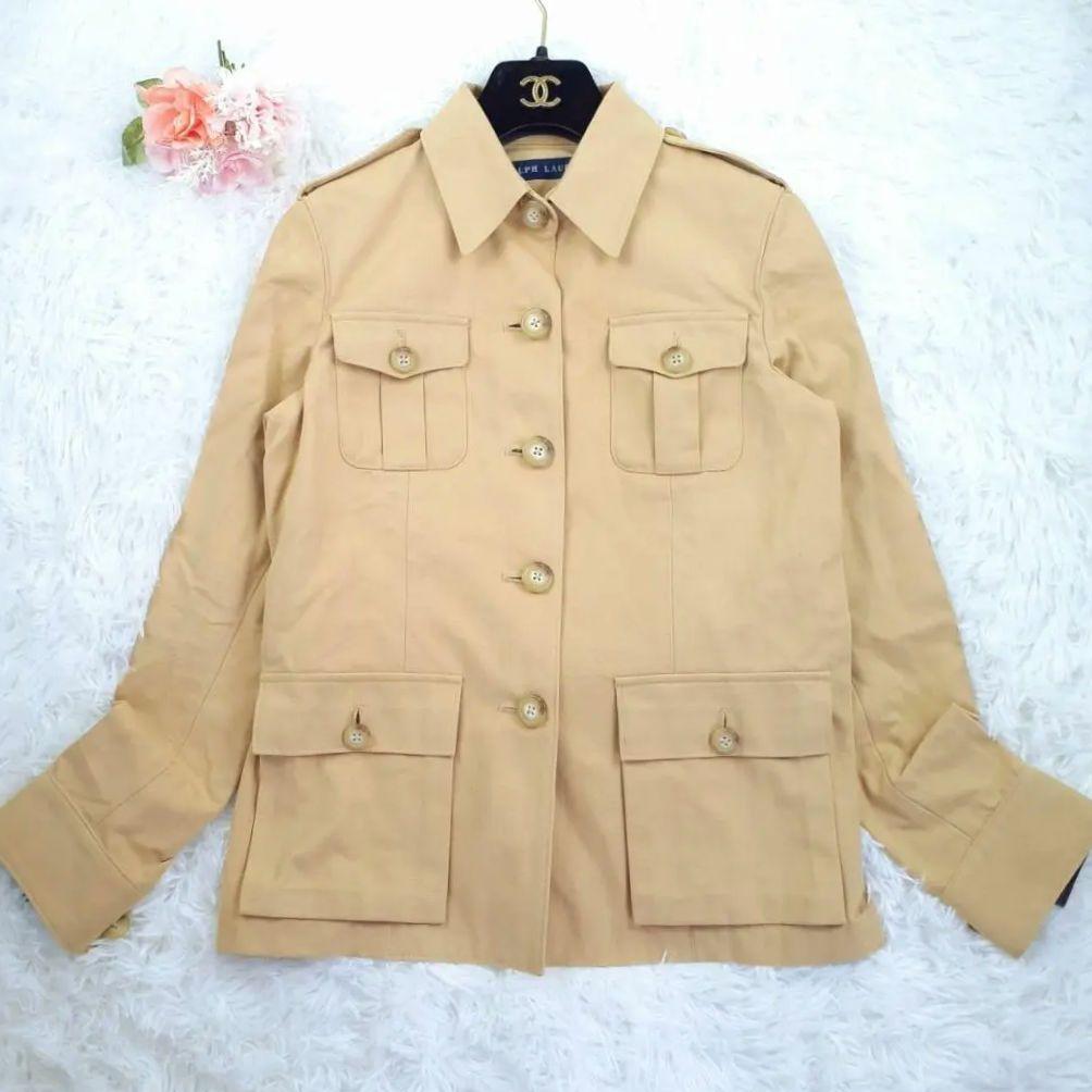 美品◎Ralph Lauren ラルフローレン トレンチコート ベルテッドコート ショートトレンチ ベージュ 白茶 ショート丈 短丈 綿 コットン100%
