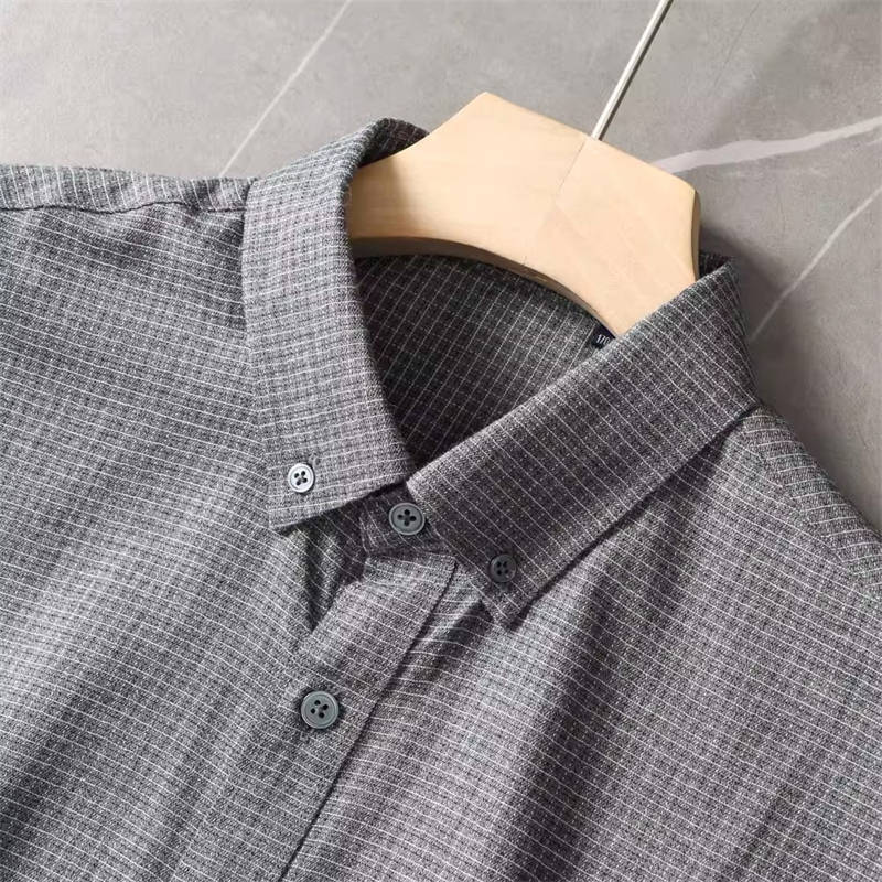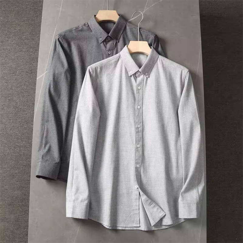 T2109-2XLダークグレー 新品 オールシーズン 綿 長袖シャツ メンズ 通気 形態安定 ノーアイロン 春夏秋 チェックシャツ ビジカジシャツ
