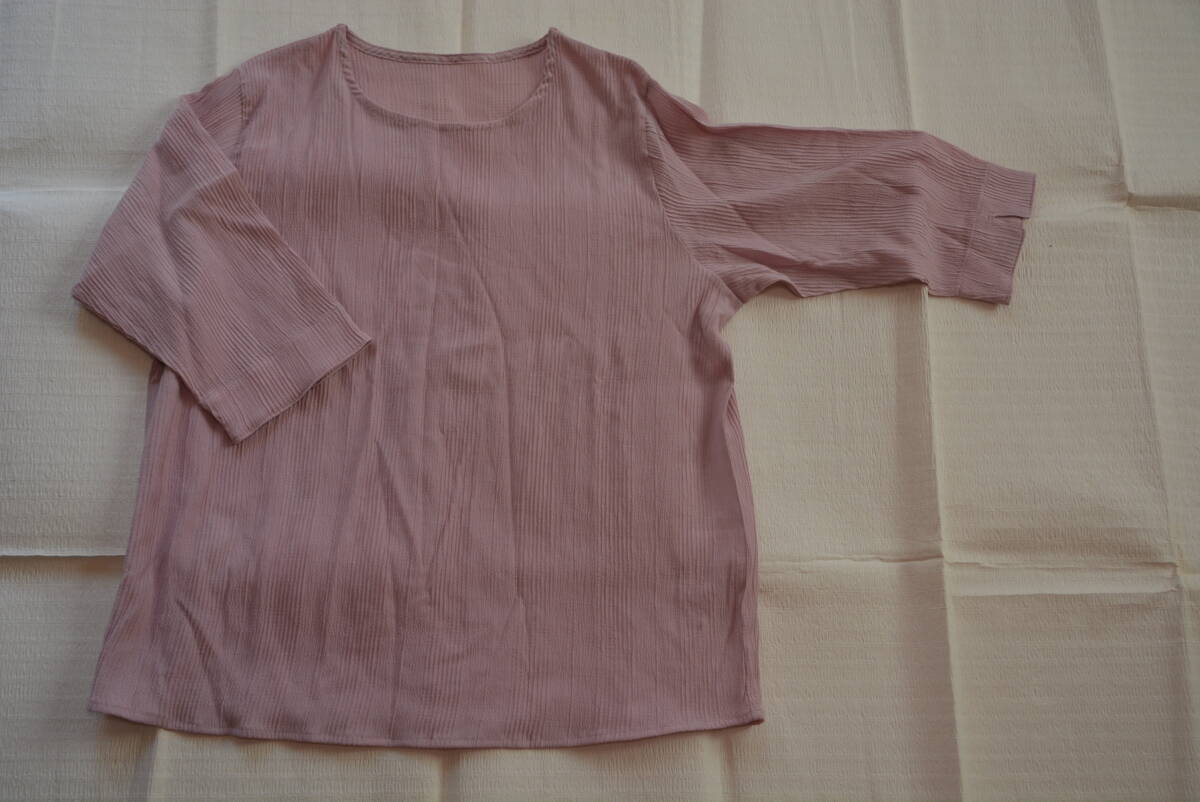 ★未使用★サイズLL 婦人7分袖カットソー 丸襟 薄ピンク