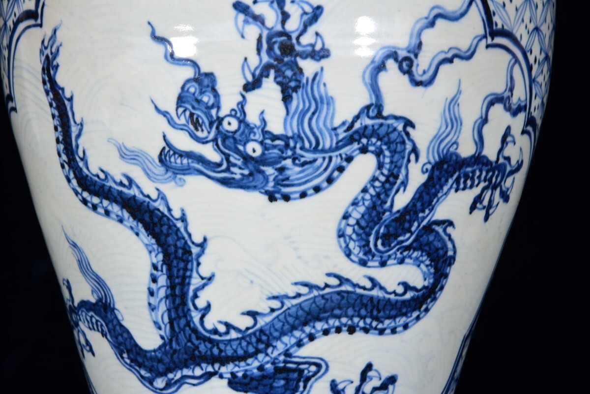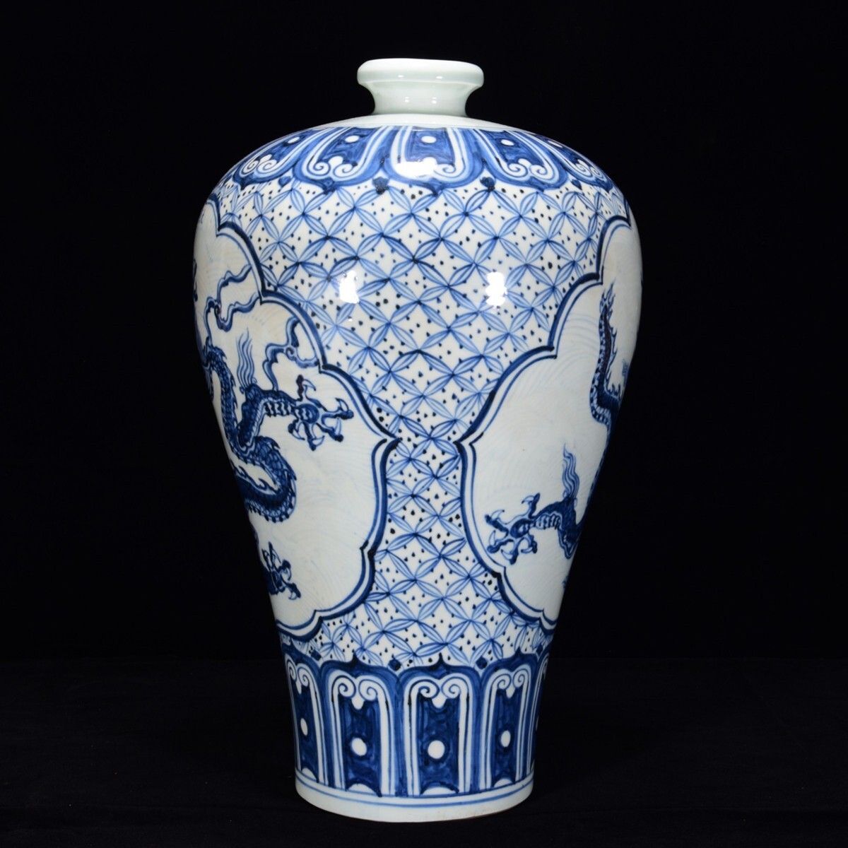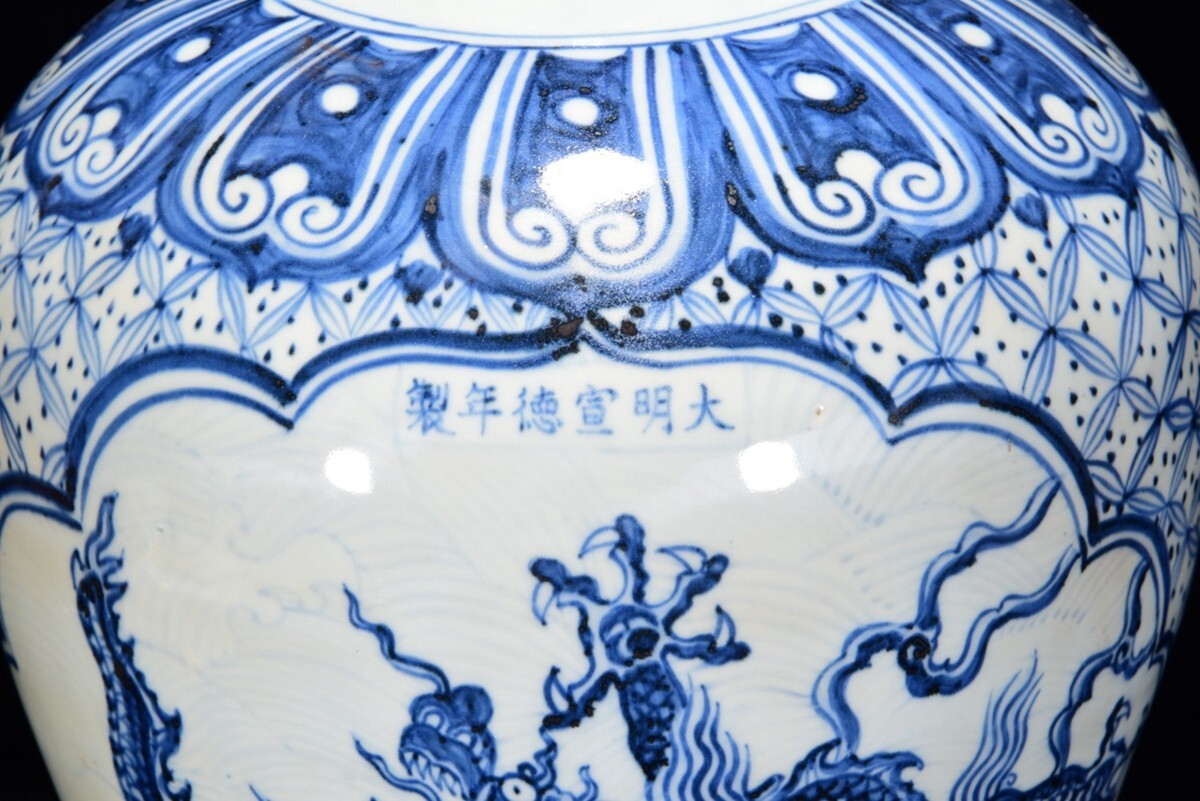 「明 宣徳年製 陶磁器 青花龍紋 梅瓶」染付 置物 擺件 古賞物 中国古美術 旧蔵出