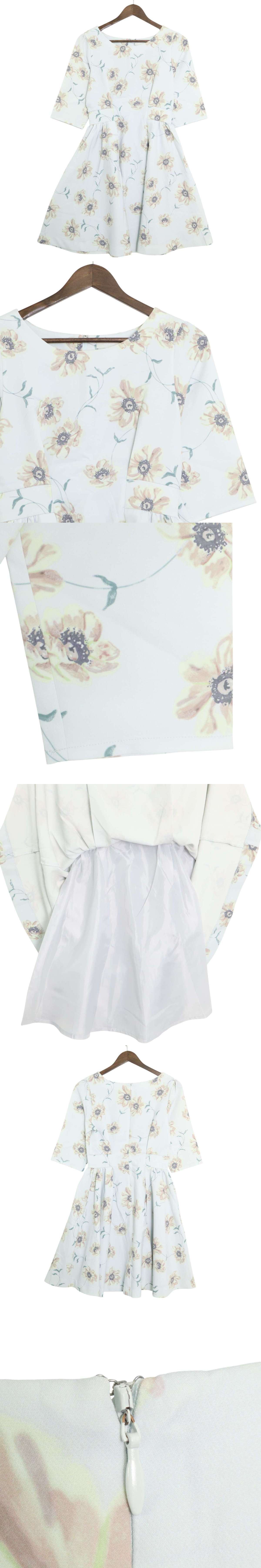 dazzlin ダズリン 春夏 ストレッチ★ フローラル 花柄 7分袖 フィット&フレア ワンピース ドレス Sz.M レディース