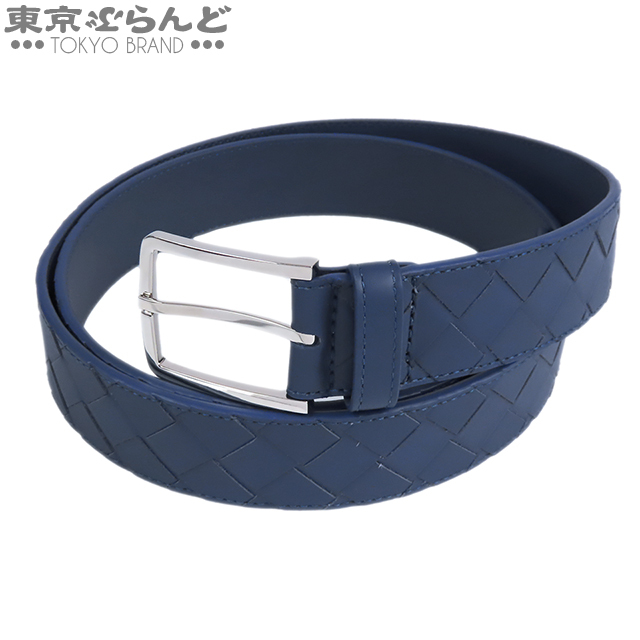 101802631 ボッテガヴェネタ BOTTEGAVENETA イントレチャート ベルト 35MM ブルー レザー 105/42 ベルト メンズ