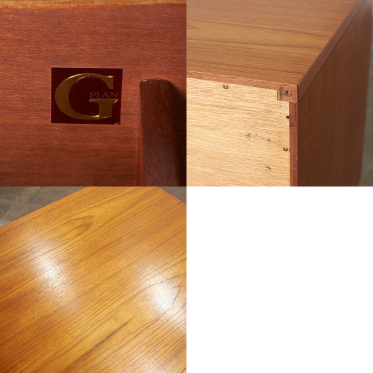 1898年創業の英国ハイ・ウィカムという町の「Ebenezer Gomme(エベネゼル・グーム)」社により 1952年に打ち出された家具ブランドです。1950年代の北欧家具ブームをイギリスで最初に取り込み1960年台にはロンドンの都市生活者の象徴と言われるほどの人気を集めました。「G」とはグーム社の頭文字、「PLAN」とはプランニング=「ライフスタイルを計画する」という商品コンセプトは単品はもちろんのこと、少しずつ買い揃えることによりトータルにモダンな部屋づくりが楽しめるという、当時としては画期的な発想でした。1987年には会社が売却され、紆余曲折を経てイングランド西部にある「G Plan Upholstery」がソファ類を、スコットランドにある「G Plan Cabinets」がキャビネットの製造を続けています。