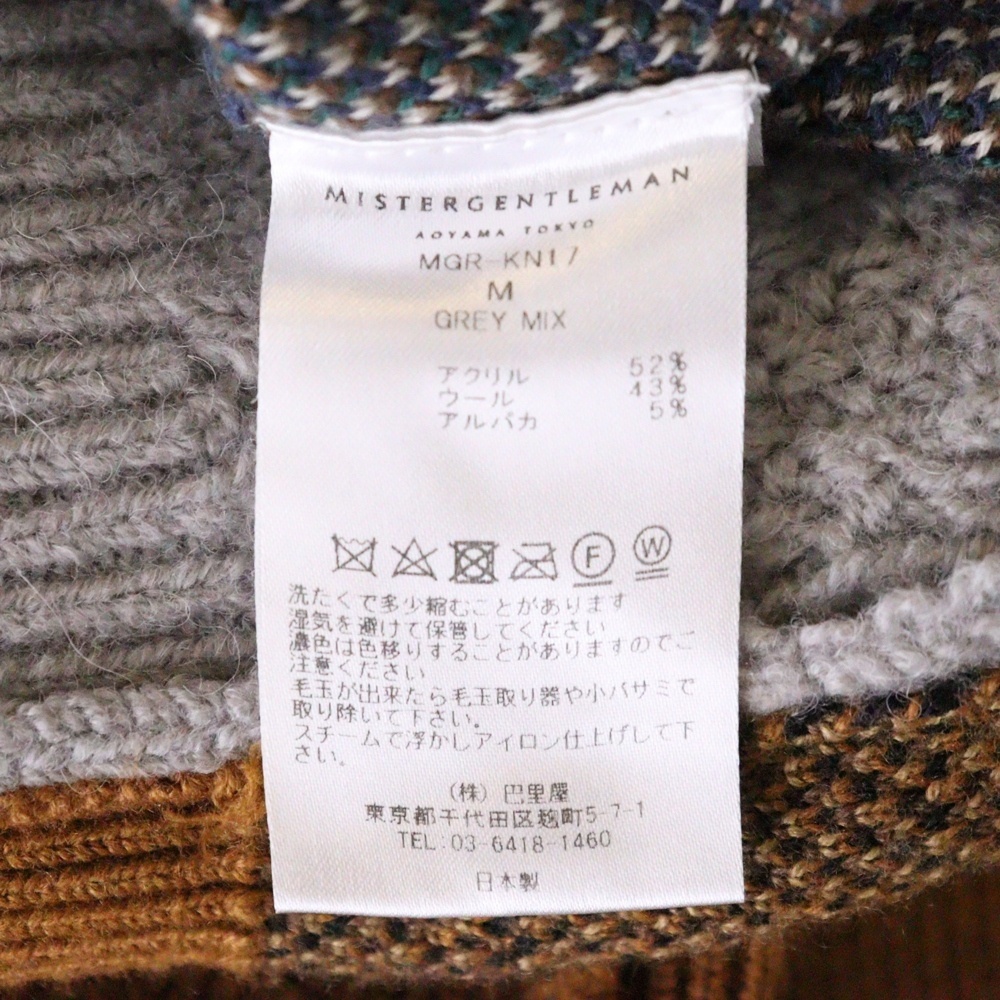 Mr.GENTLEMAN ミスタージェントルマン MIX PATTERN KNIT ミックスパターン切り替えニット マルチカラー MGR-KN17