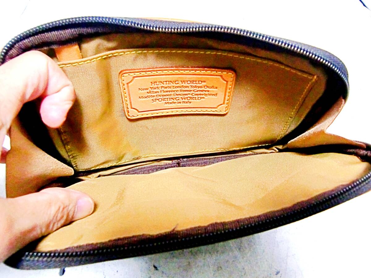 HUNTING WORLD バチュークロス セカンドバッグ グリーン ブラウンベルト付 ハンティングワールド