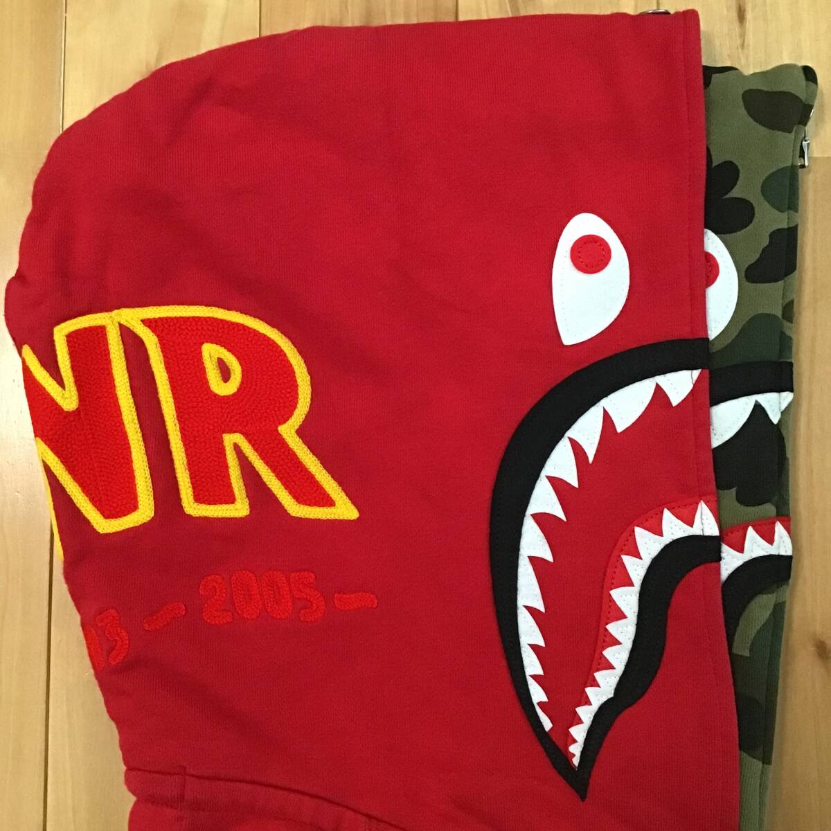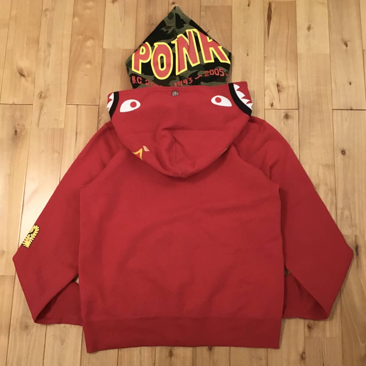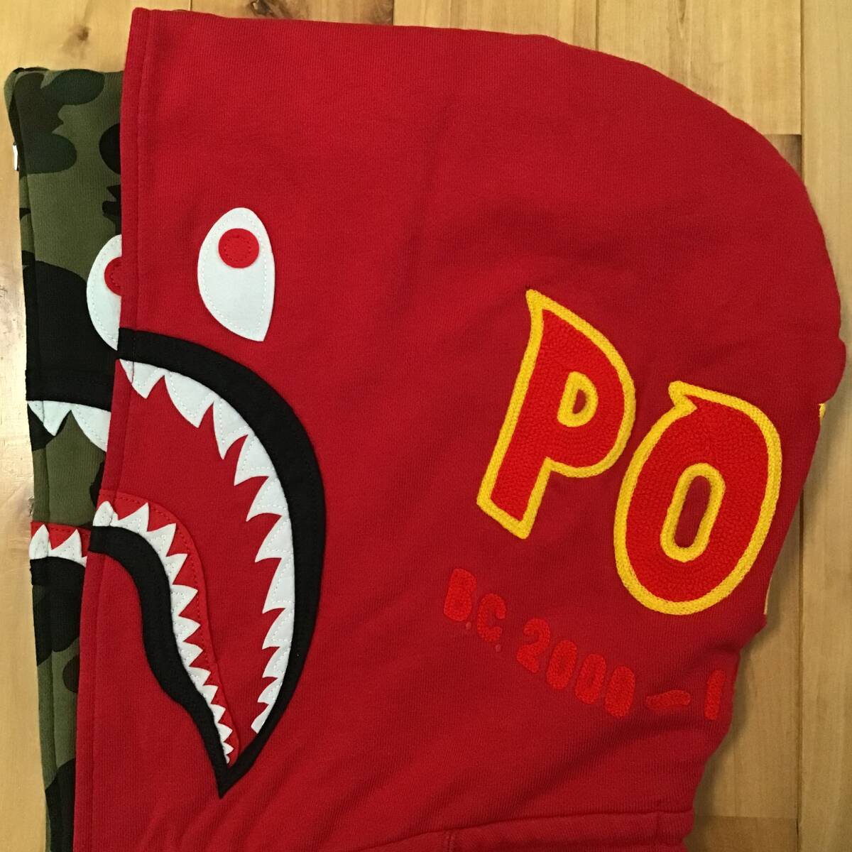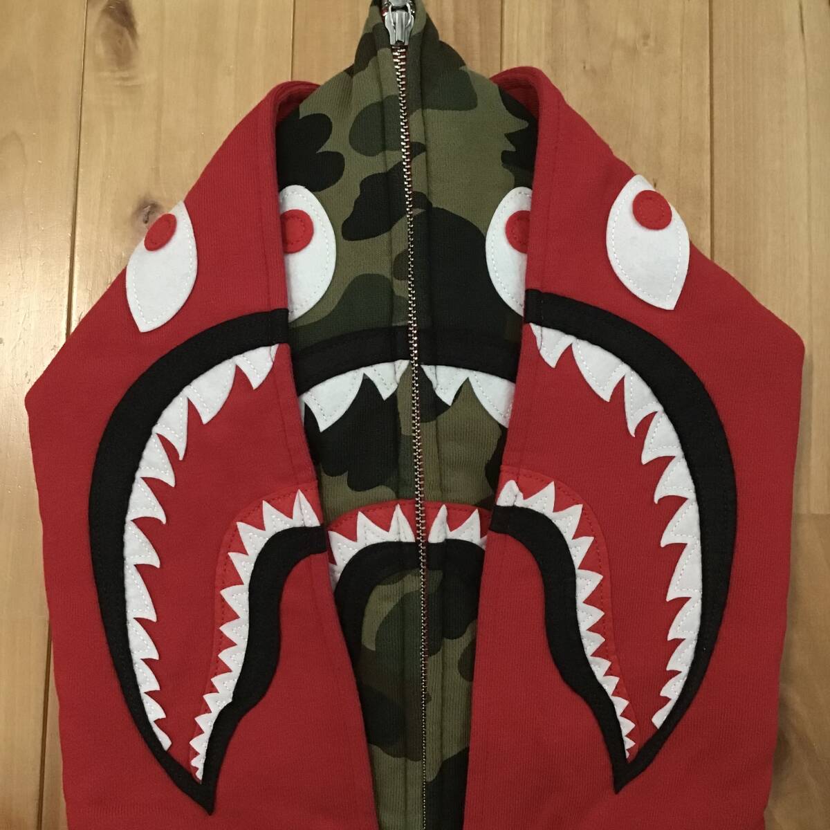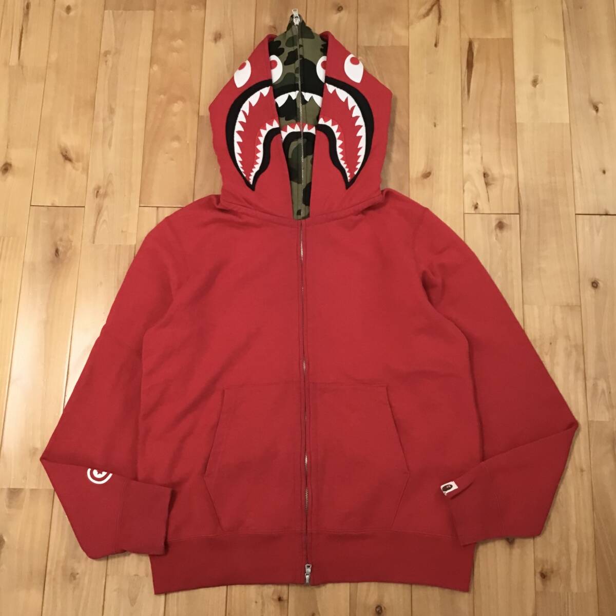 a bathing ape ダブルシャークパーカー 1st camo green × レッド Mサイズ です★