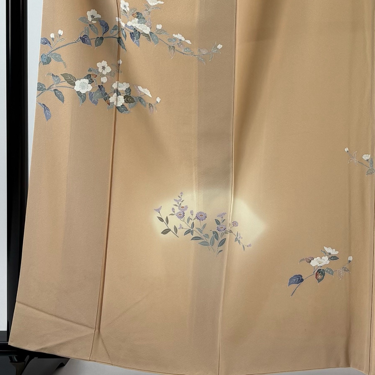 | 付下げ 秀品 落款 枝花 草花 ぼかし 薄茶色 袷 身丈162.5 裄丈63 S 正絹 【中古】 |