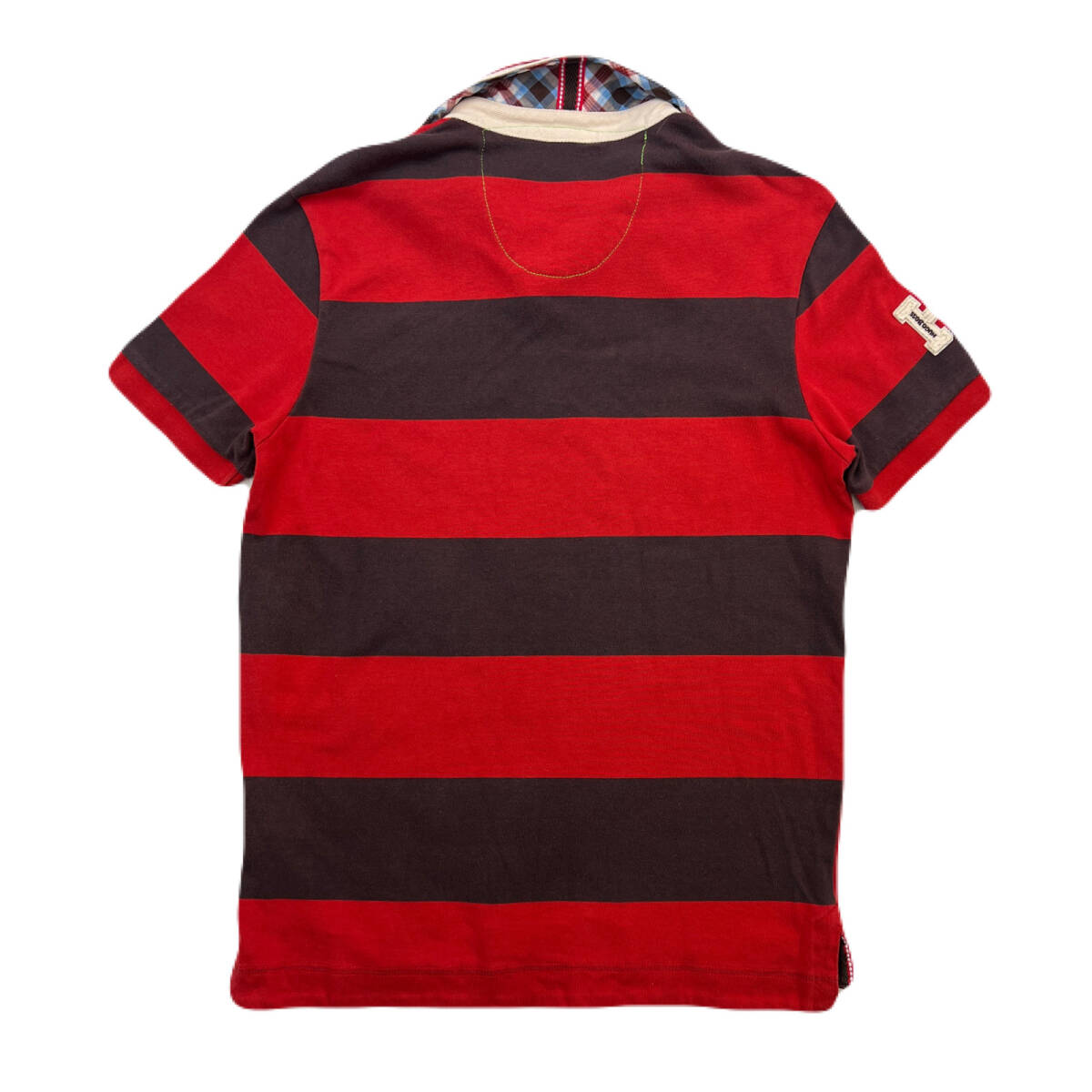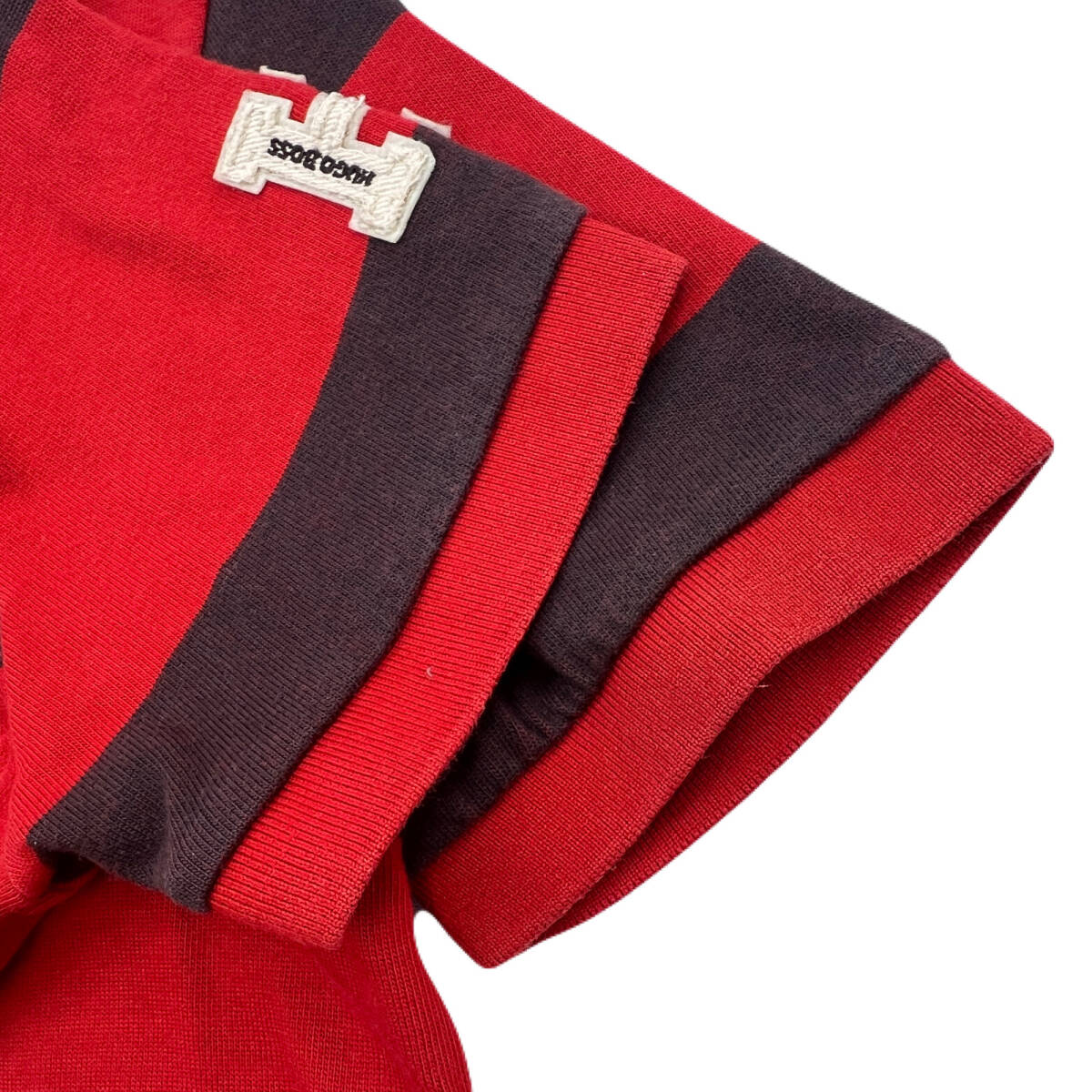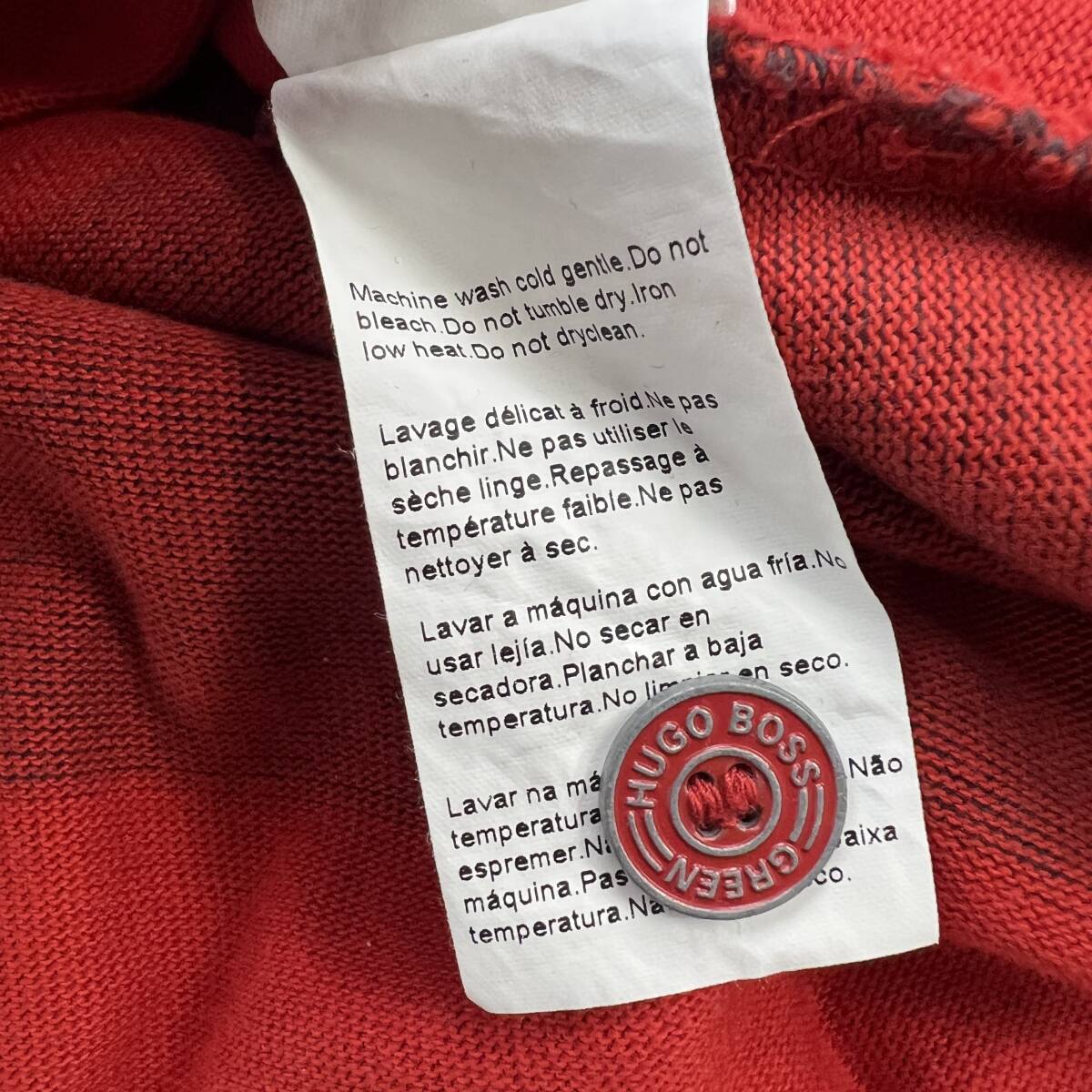 HUGO BOSS 半袖 ポロシャツ ラガーシャツ レッド ブラウン ボーダー メンズ S 【 さわやかな1枚♪ 】 ヒューゴボス ●DK282