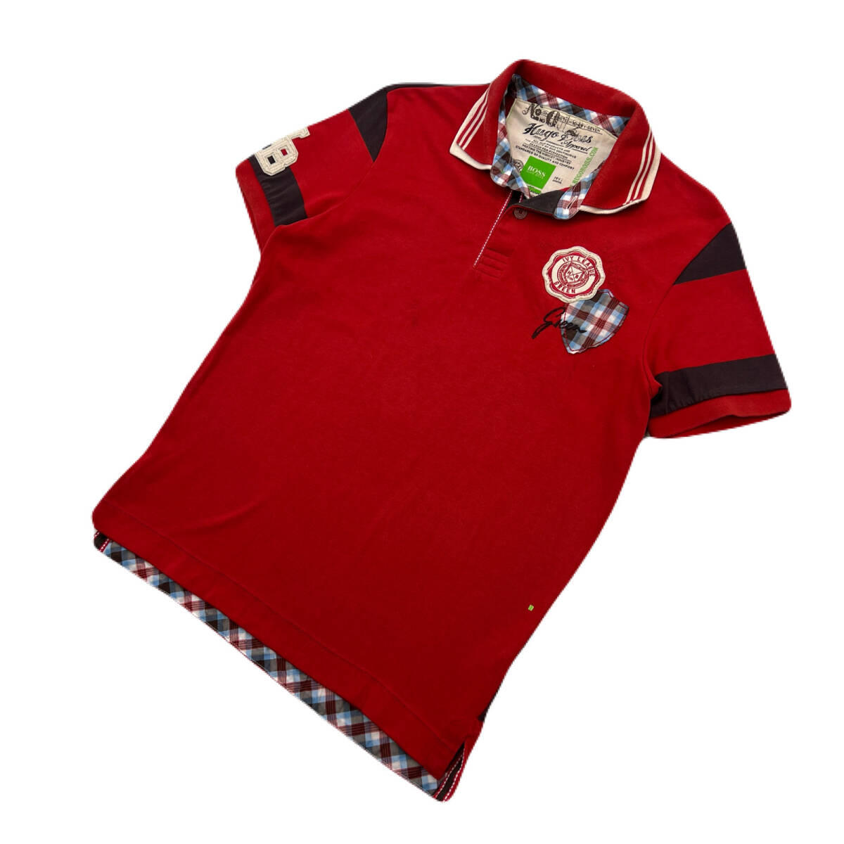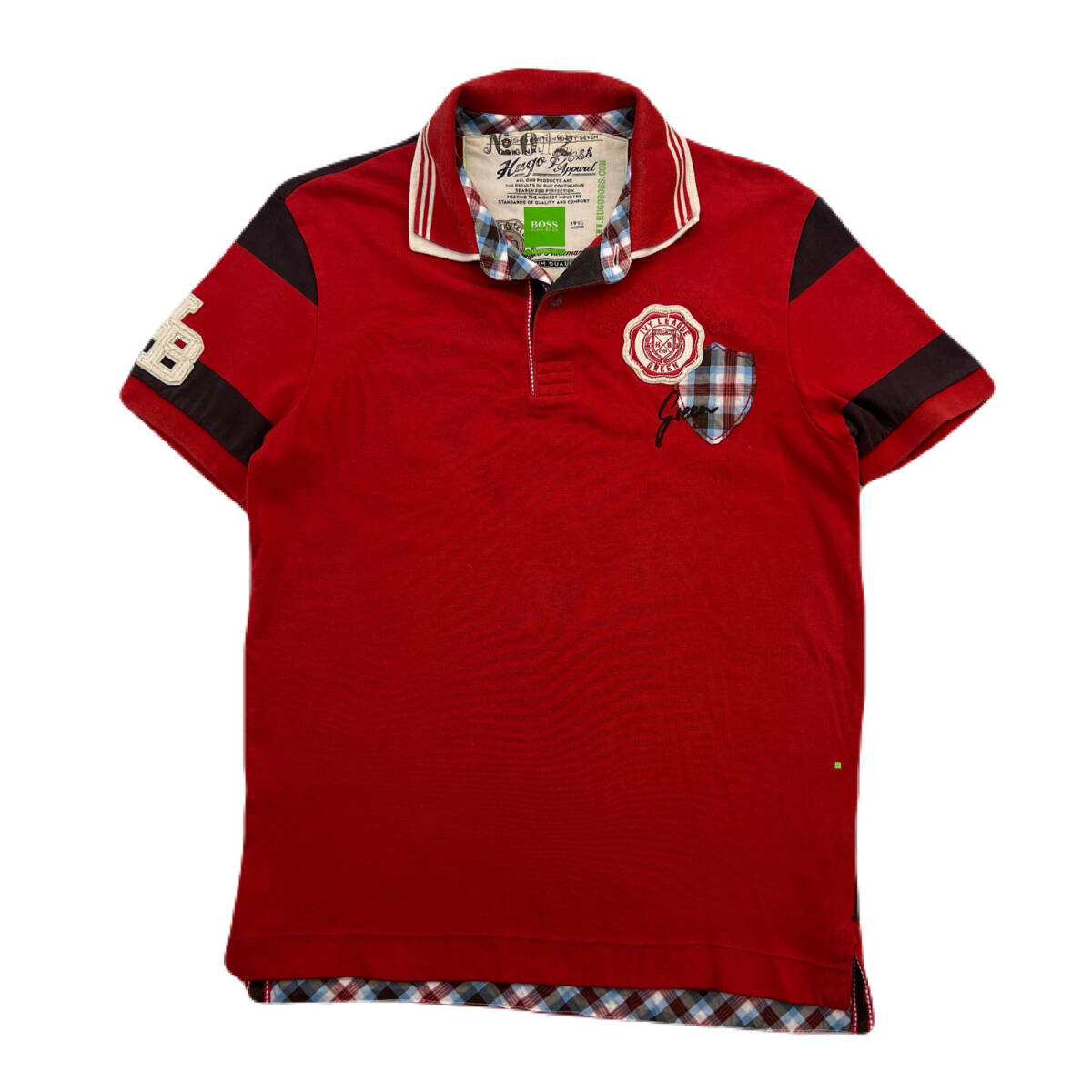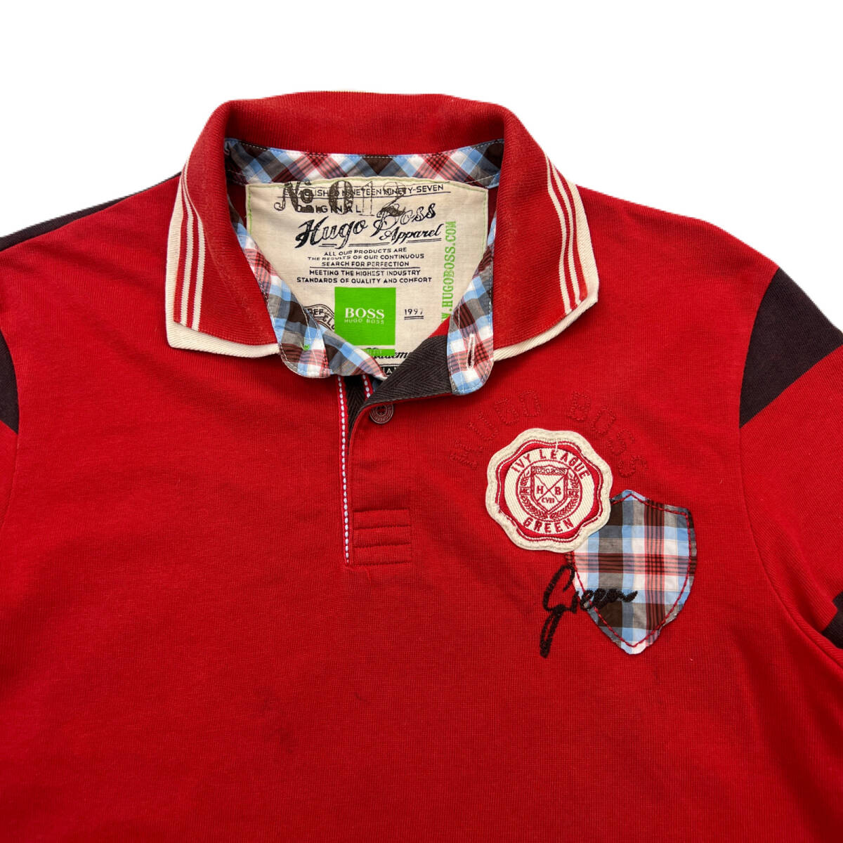 HUGO BOSS 半袖 ポロシャツ ラガーシャツ レッド ブラウン ボーダー メンズ S 【 さわやかな1枚♪ 】 ヒューゴボス ●DK282
