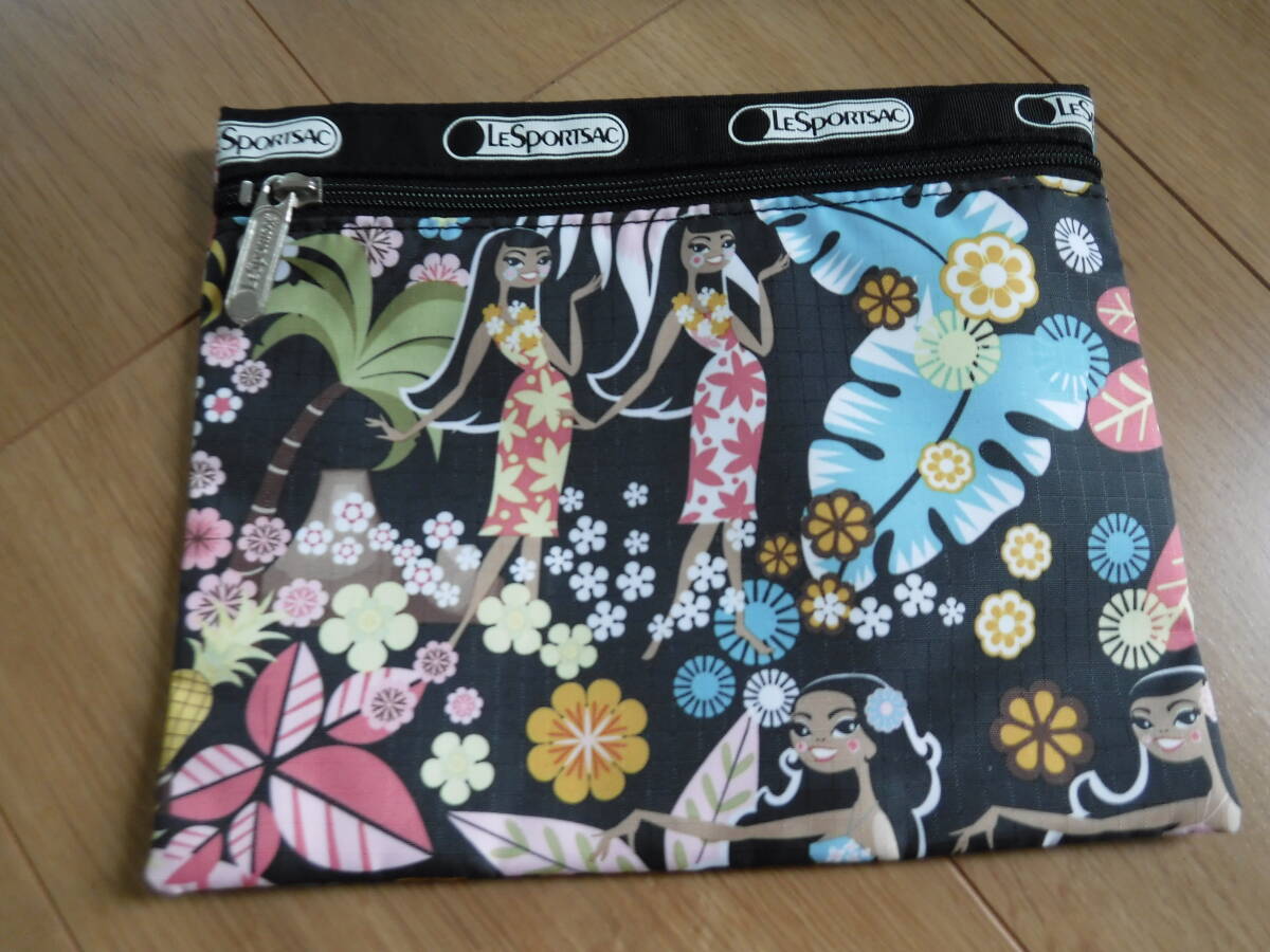 税不要特価 新品!LESPORTSAC レスポートサック ハワイ限定 ワヒネフラ フラガール ヤシの木 モンステラ ポーチ♪12