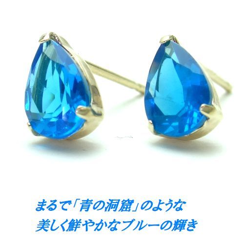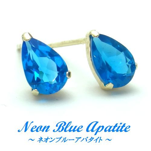 K10 ネオンブルーアパタイト ペアシェイプ ラウンド ピアス WG YG 選べるゴールド ジュエリー 6x4 天然石 高品質 インディゴ 箱付き