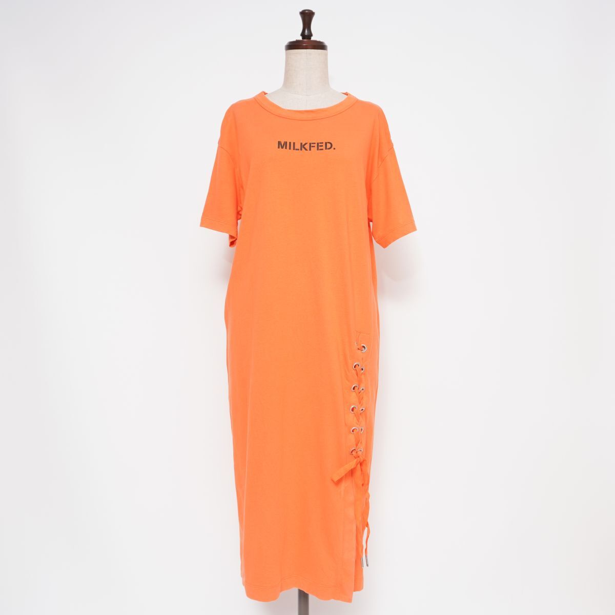MILK FED. ミルクフェド サイドスリットレースアップワンピース ロング丈 レディース オレンジ 橙 サイズF*ED818