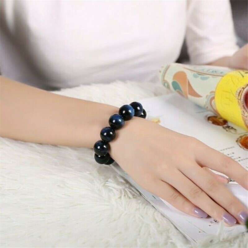 LDL211#ブルー タイガーアイ 天然石 メンズ ブレスレット虎眼石 バングル 光沢 開運 12mm