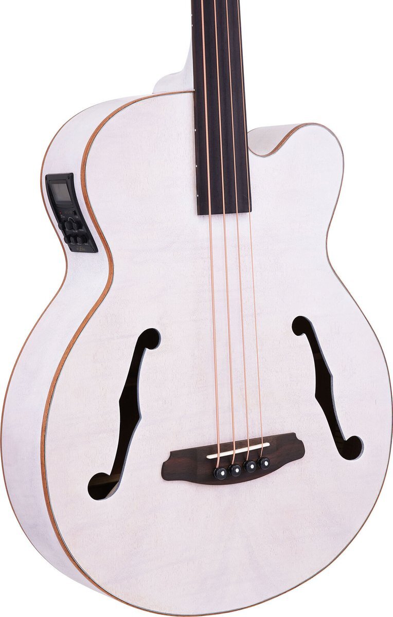 • 4バンドイコライザー、チューナー付きのプリアンプを搭載したアコースティックベースのフレットレスモデル。温かみのある豊かなサウンドが魅力です。ボディにはウッドバインディングを施し、木目をいかしたオープンポアのマット仕上げを採用。アンプを使用してはもちろん、生音でも十分に楽しめます。