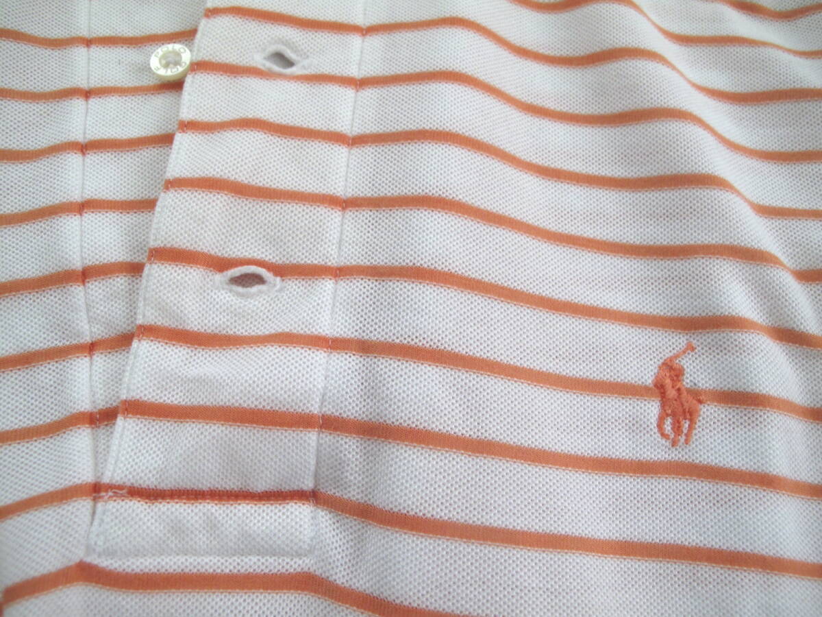 商品名*** ポロ ゴルフ 半袖ポロシャツ L 白&オレンジ 状態***中古 説明*** ポロ ゴルフ ラルフローレン ゴルフ用のメンズ半袖ポロシャツです。 薄手で柔らかい生地です。 白地にオレンジのボーダーです。 株式会社ナイガイの国内正規品です。 何度か洗濯している中古ですが 着用感は少ないです。 目立つような汚れはないですが 画像に載せているように 前身頃のお腹(右より)に 約1mmの小さな穴が有ります。 畳んで保管・梱包しますので 畳みシワはご容赦ください。 サイズ:L/G 実寸 平置 約 肩幅 47cm 袖丈 28cm 脇下の身幅 57cm 着丈 74-78cm 素材: 綿 100% |