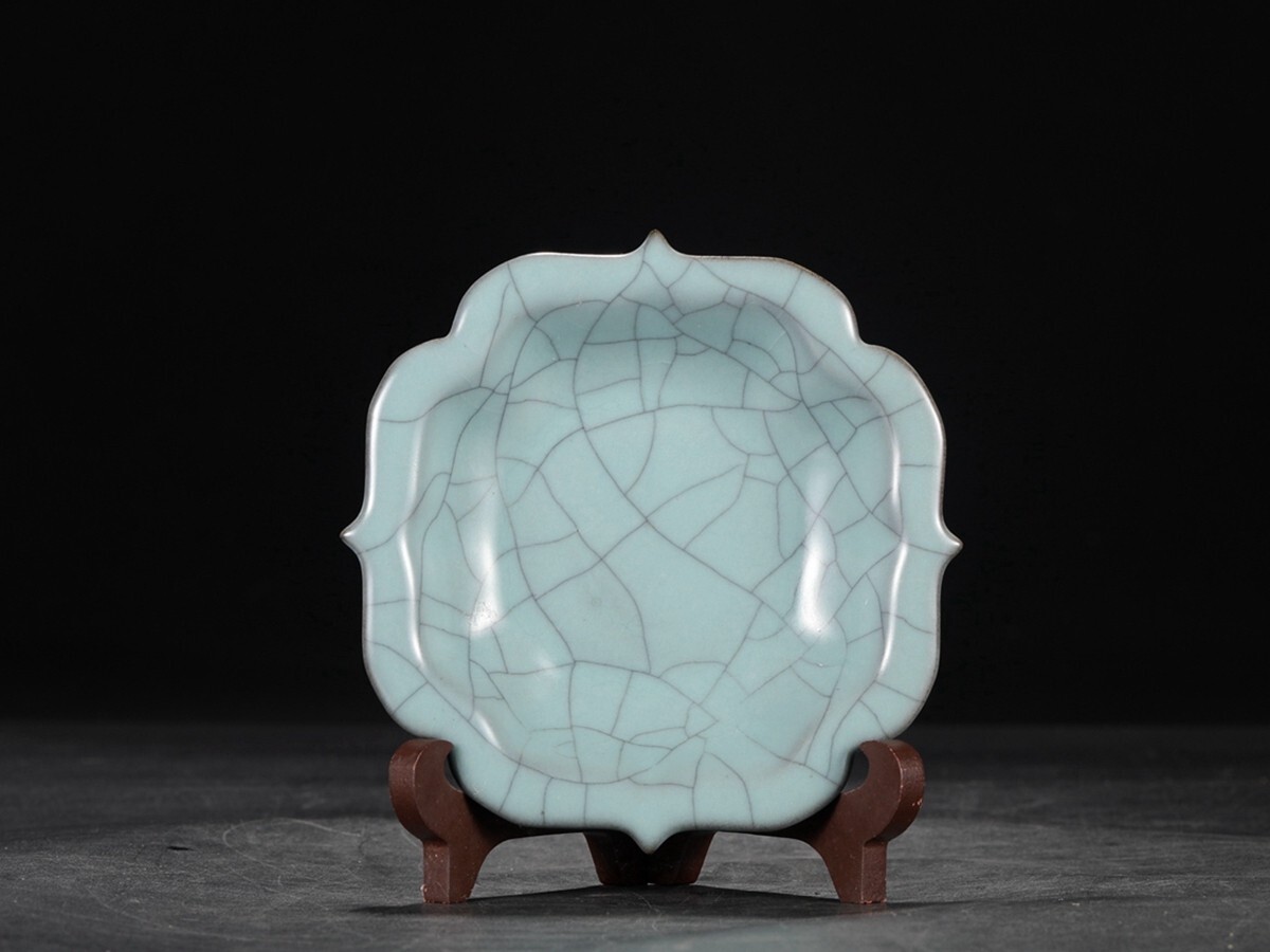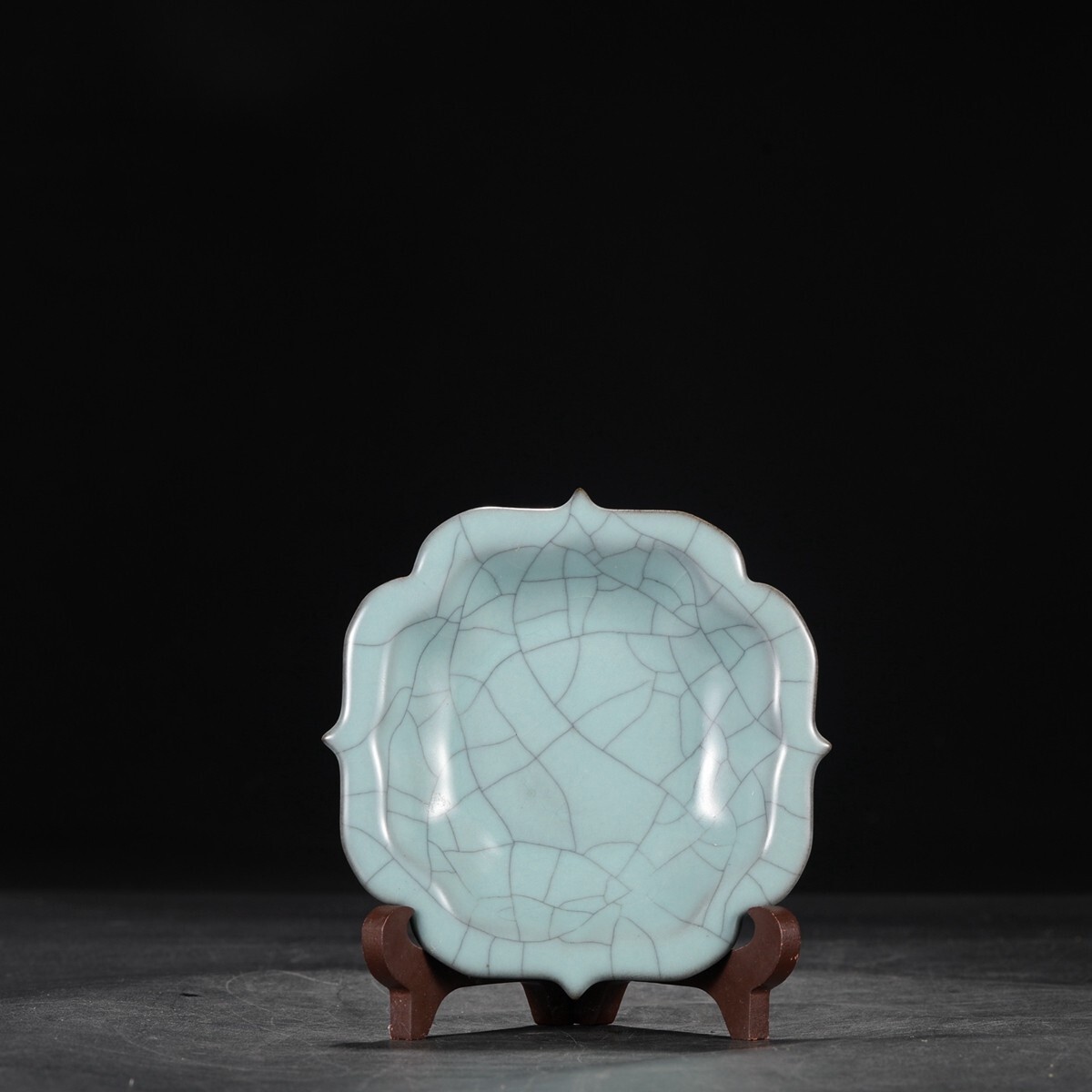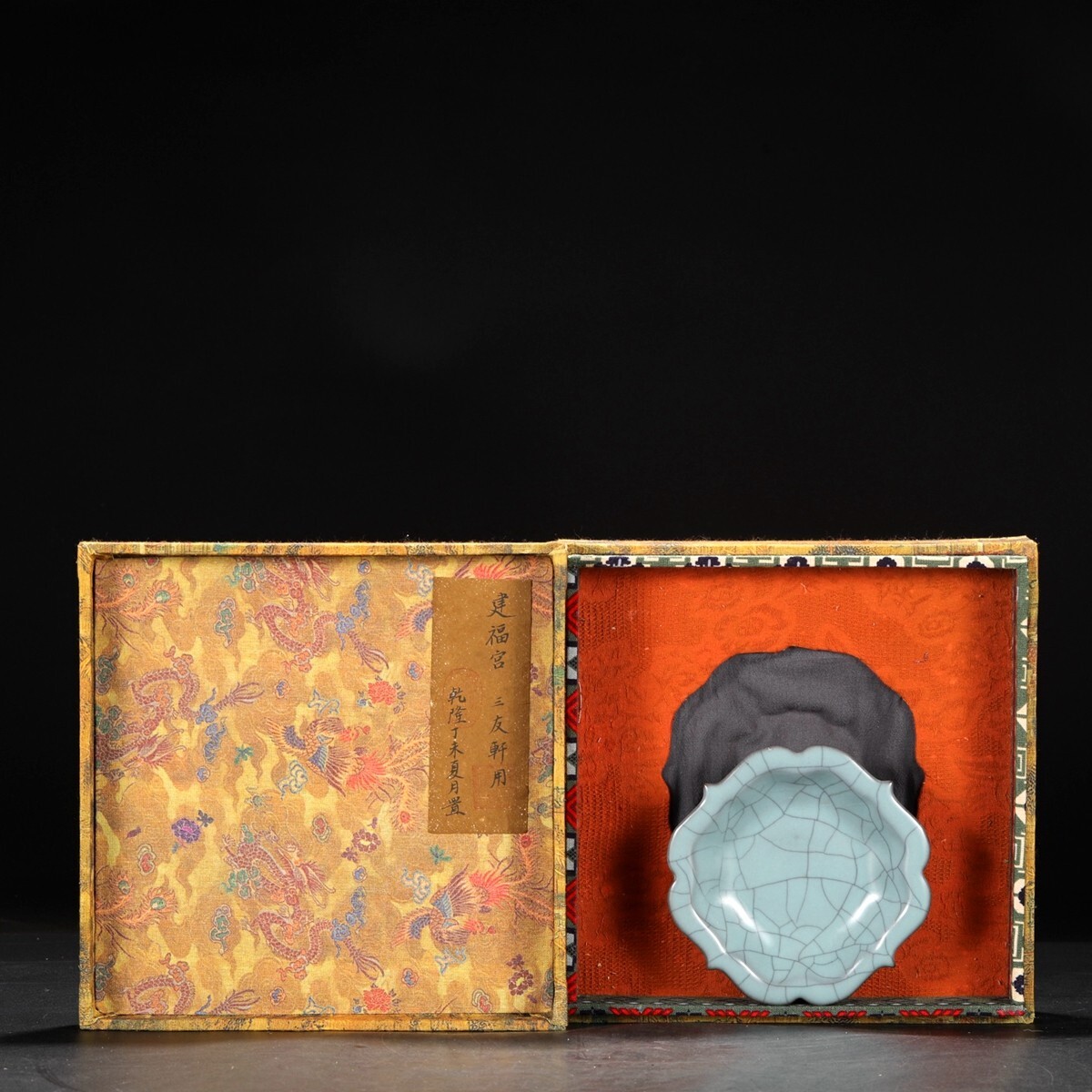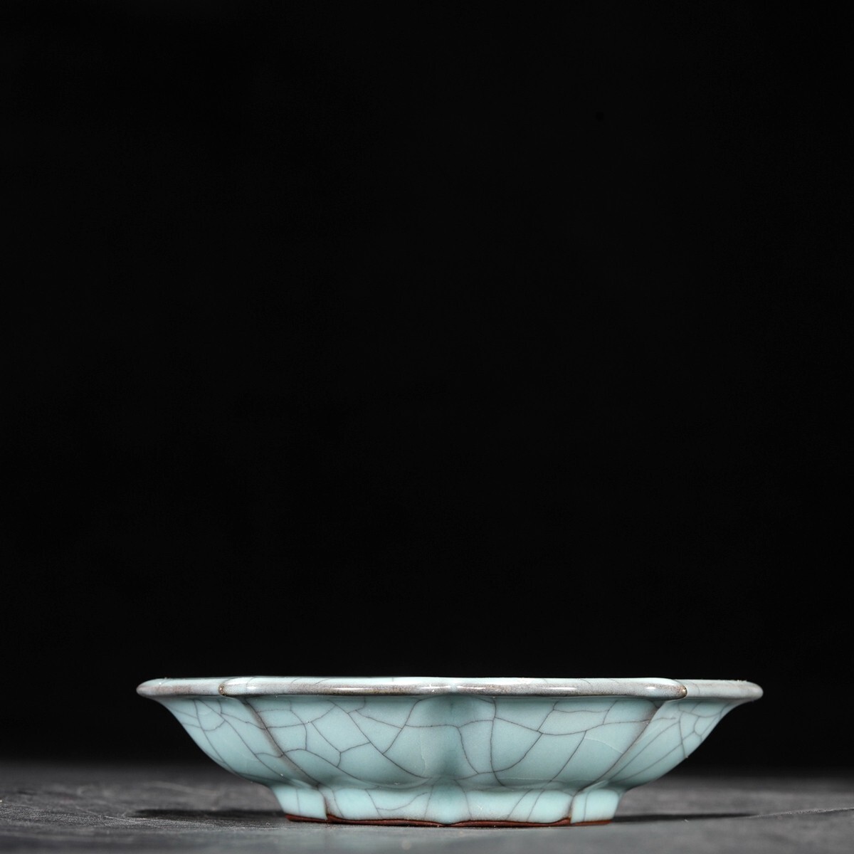 【瓏】陶磁器 官窯 青釉菱口洗 宋代 染付 置物擺件 古賞物 古美術 陶芸 蔵出