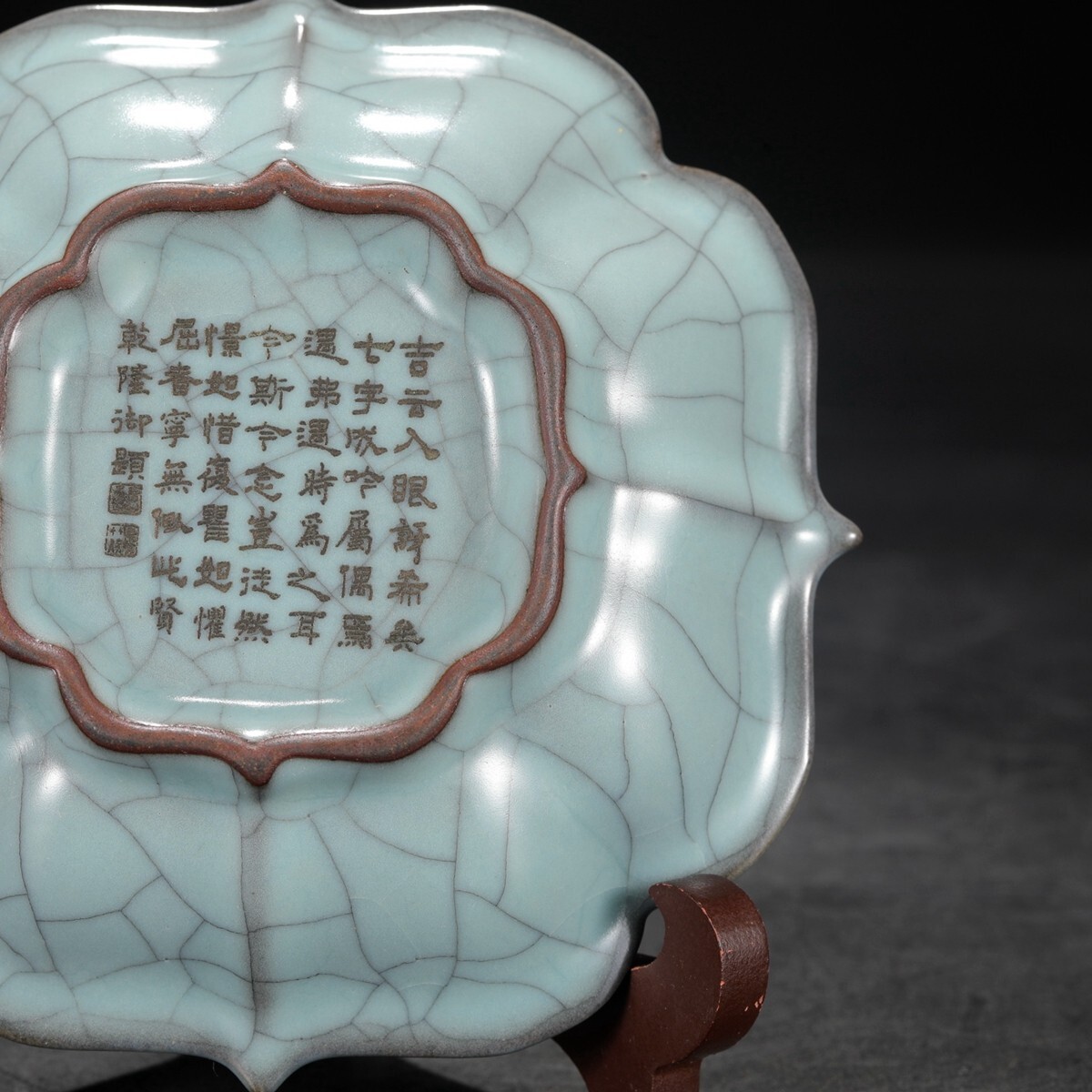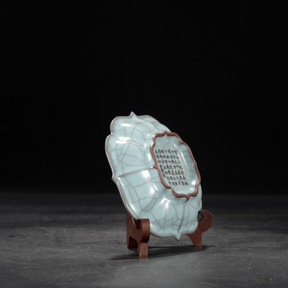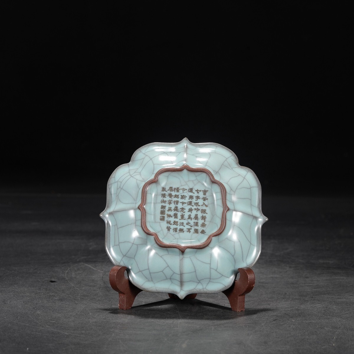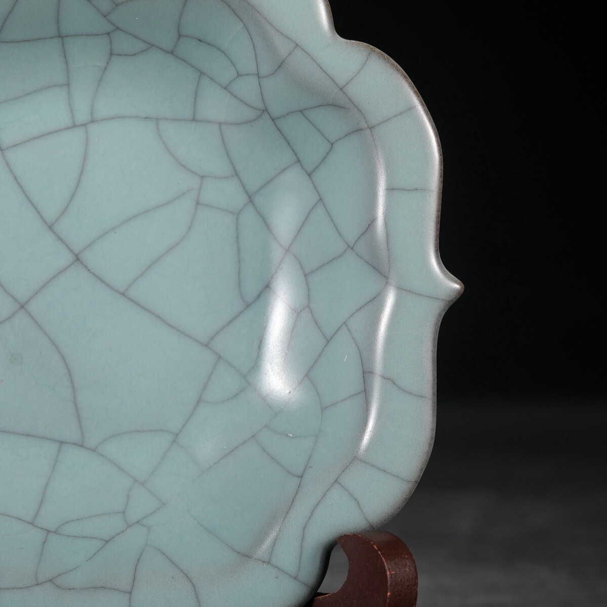 【瓏】陶磁器 官窯 青釉菱口洗 宋代 染付 置物擺件 古賞物 古美術 陶芸 蔵出