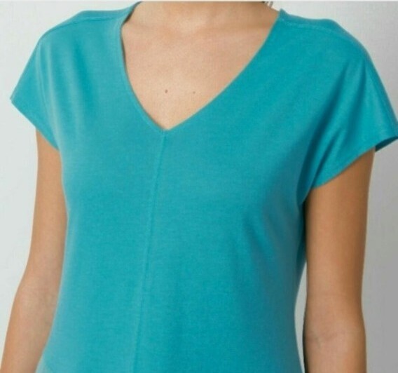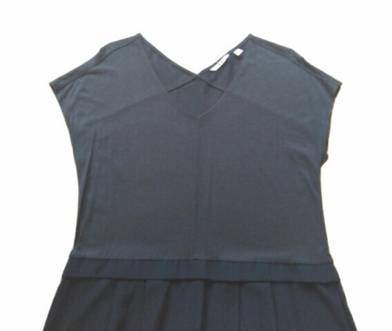 すっきりVネックで着心地の良いTシャツのような素材で、スカートはサラッとしたポリエステル素材です。