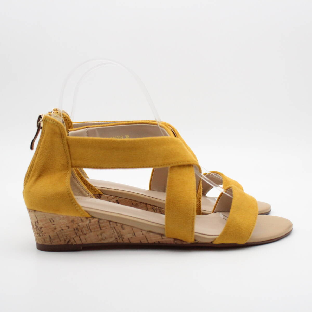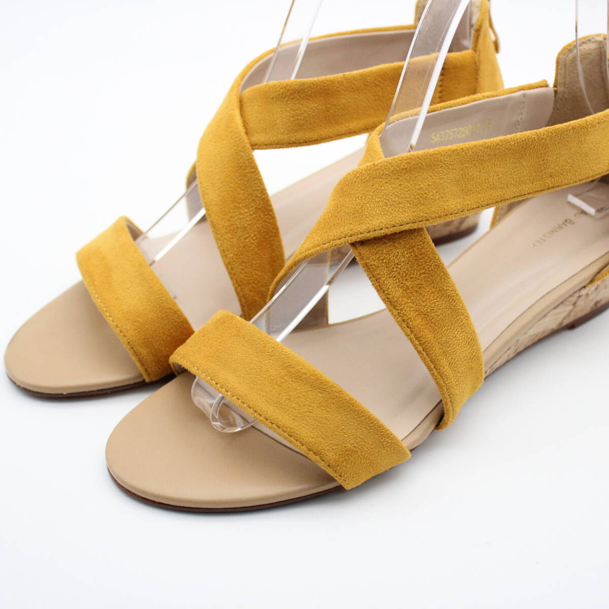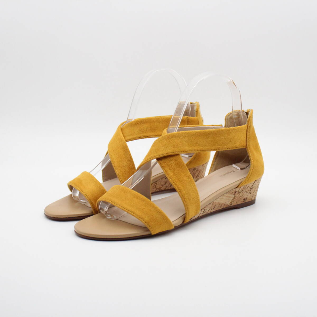 足元がすっきりと見えるクロスサンダルは、足元をふんわりとホールドするローウェッジサンダル。