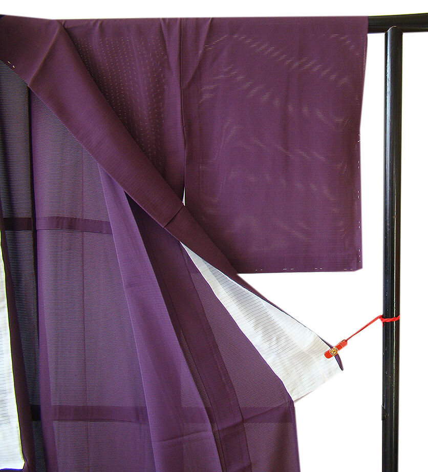 商品説明 | こちらのお品は夏物でございますので、7月~8月にお召頂ければと思います。 「絽」と言えば、紗と双璧を成す夏のお着物の生地で、 その最大の魅力は絶妙の透かし加減でございます。 清涼感溢れる地の風を通すしなやかさは夏に着物を着るという贅沢を 快適に愉しませてくれる事でしょう。 着物には、大きく分けて「袷(あわせ)の着物」と 「単衣(ひとえ)の着物」と「夏着物」があります。 反物(表地)を着物に仕立てるときに、裏地類をつけるものを袷の着物、 つけないものを単衣の着物と呼び、胴裏や八掛といった 裏地がつかない一枚ものの着物です。 また裏地がないため、座る時などにヒップのラインが目立たないよう、 居敷当て(いしきあて)の生地をつけることもあります。 居敷当ては付いておりません。 とても滑らかでしなやかな柔らかな手触りの着心地良い上質な「駒絽」の生地、 上品な蒲萄色地の色無地着尺、背に「丸に揚羽蝶」の紋1ヶ入っております。 |