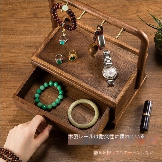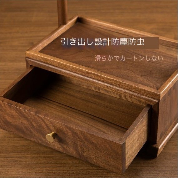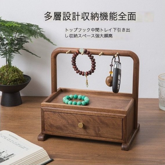 黒胡桃木玄関収納ケース入戸口鍵掛け物置棚引き出し式天板実木アクセサリーケース