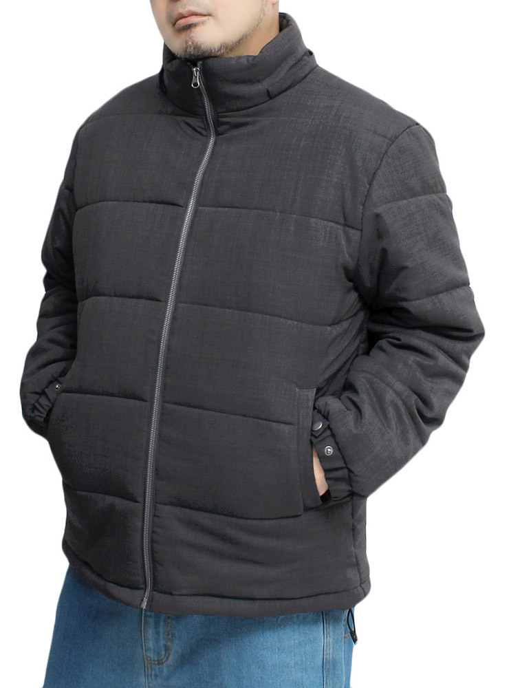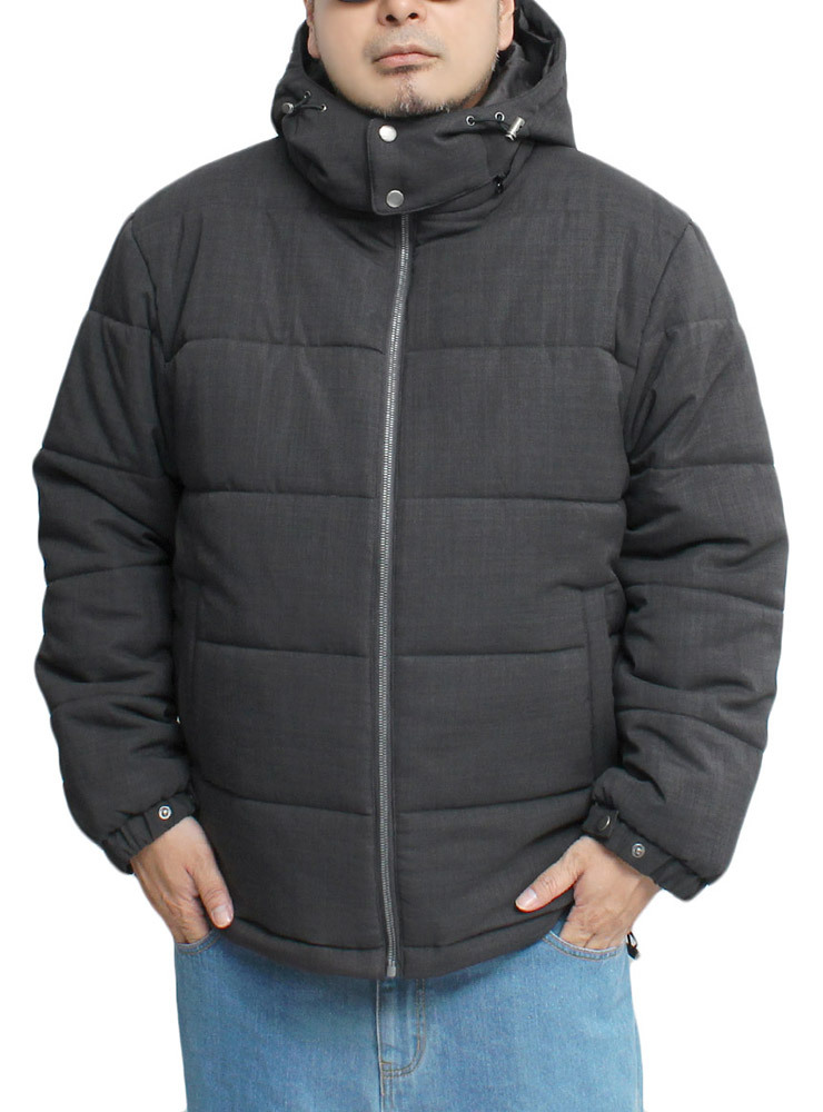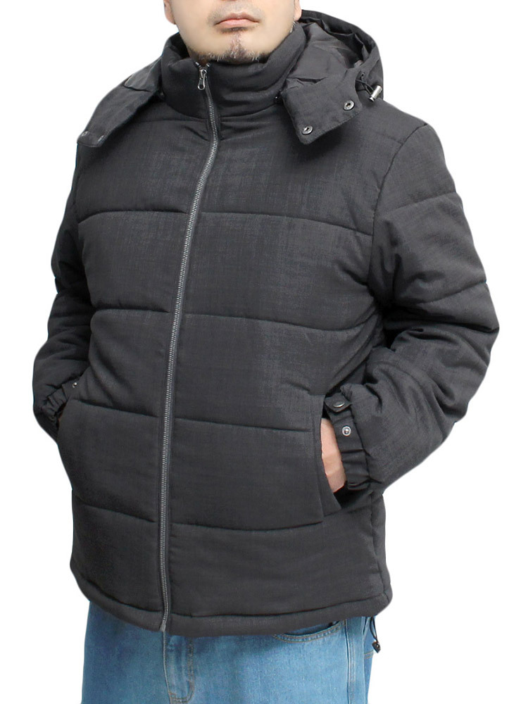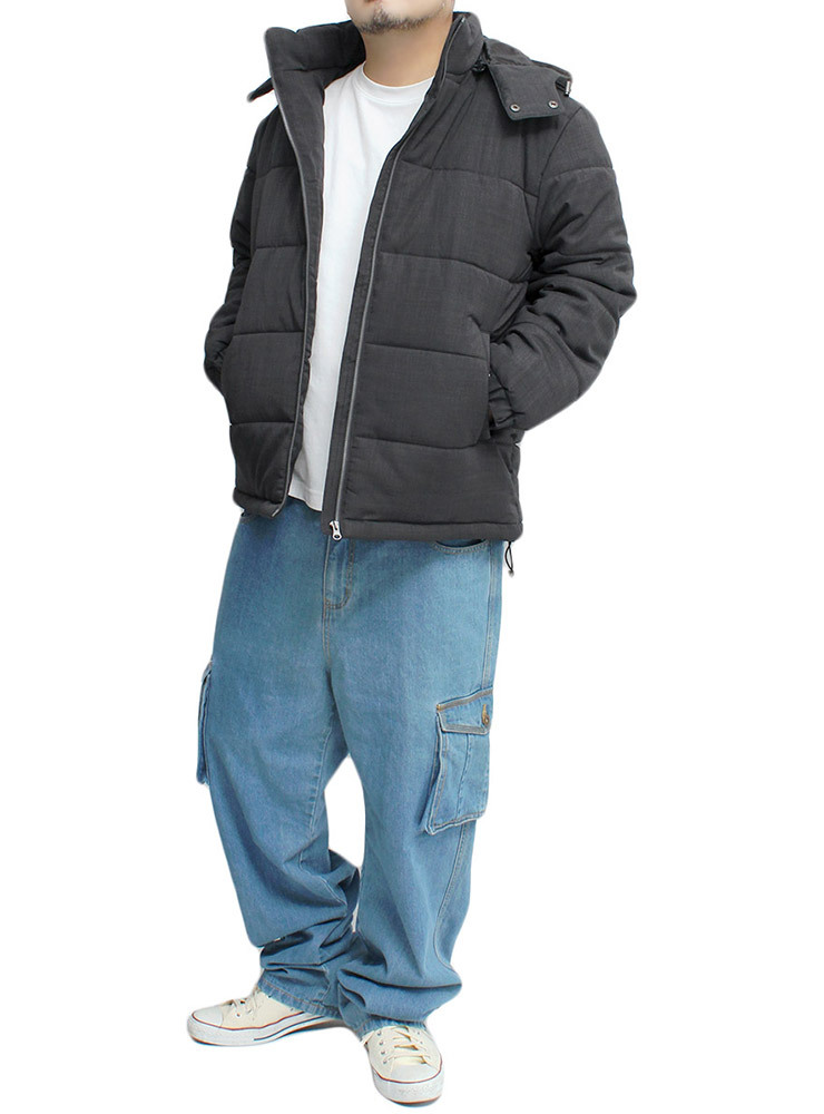 商品名 | 【新品】 2L チャコール 中綿 ダウンジャケット メンズ 大きいサイズ フード脱着 防寒 厚手 ジップアップ ボリュームネック ブルゾン |