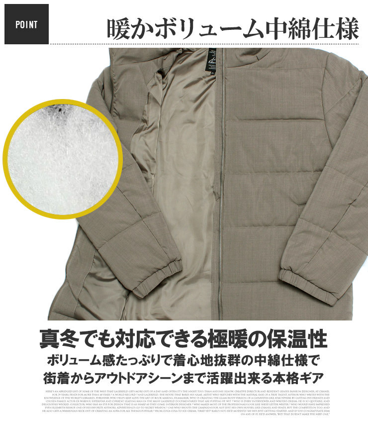 商品説明 | 今季のトレンドとして注目を集めるビッグボリュ−ムネック中綿ダウンジャケットの登場です。 |