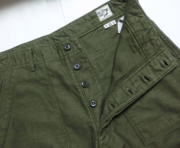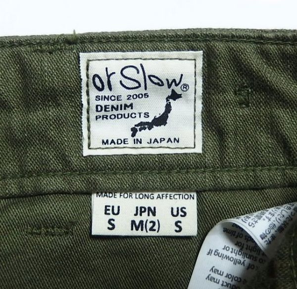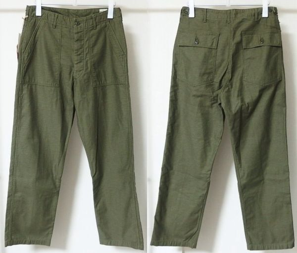 | <商品名> or slow orslow オアスロウ VINTAGE FIT FATIGUE PANTS ファティーグ パンツ M/2 ベイカー <サイズ> M/2 <詳しい寸法> ウエスト82股上34股下79裾幅23.5(単位:㎝) ぐらいです。 <商品状態> 若干の使用感はございますが良好です。 <商品説明> VINTAGE FIT FATIGUE PANTS