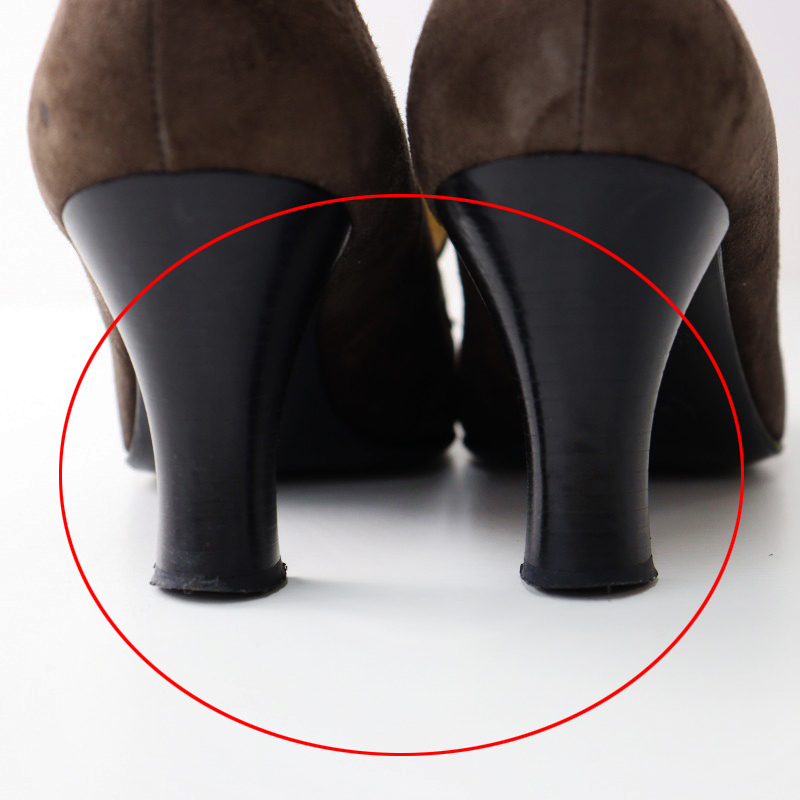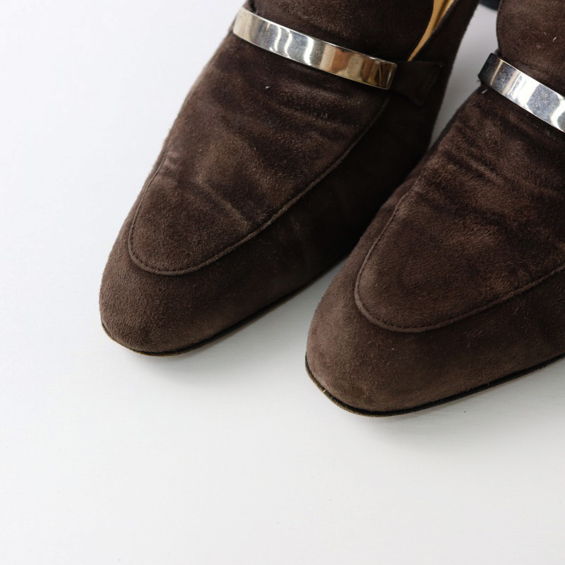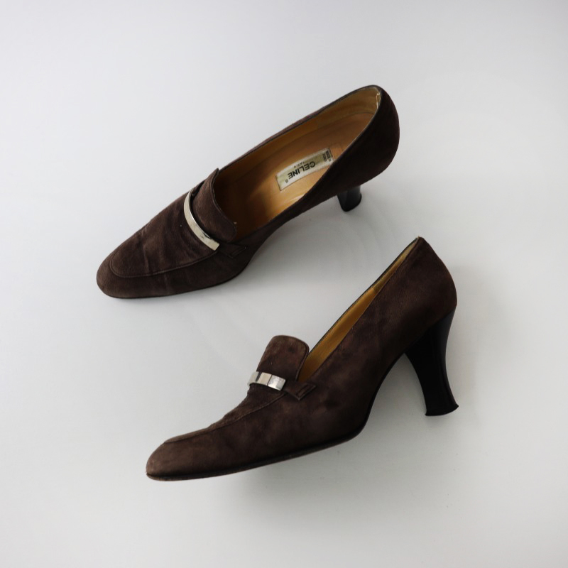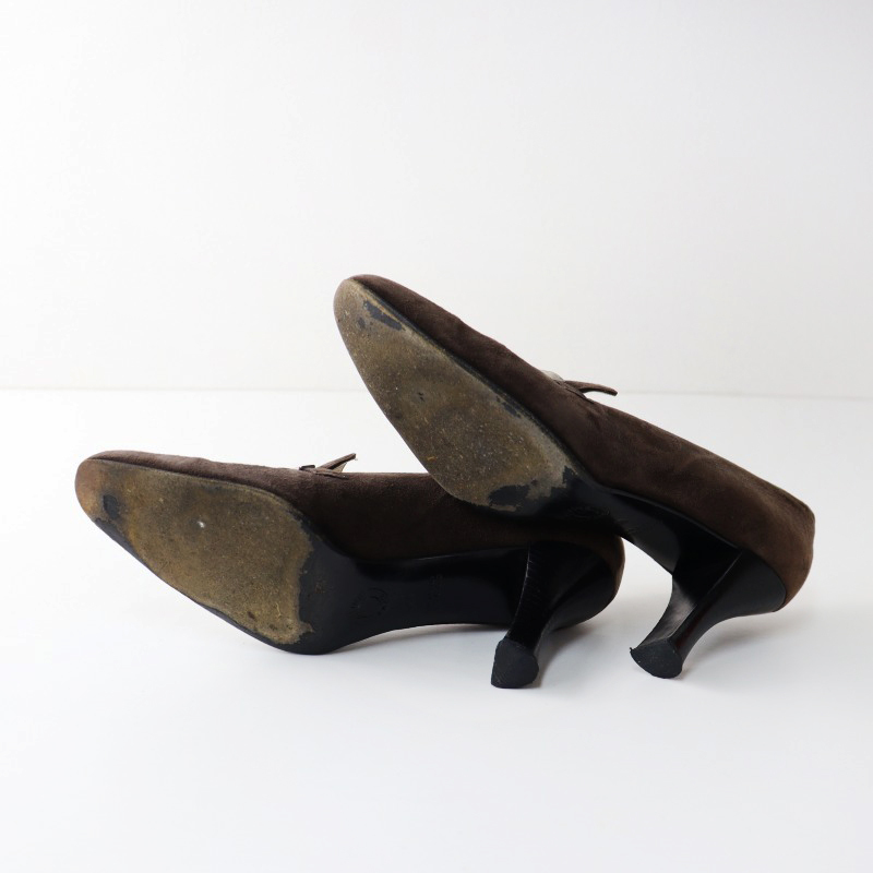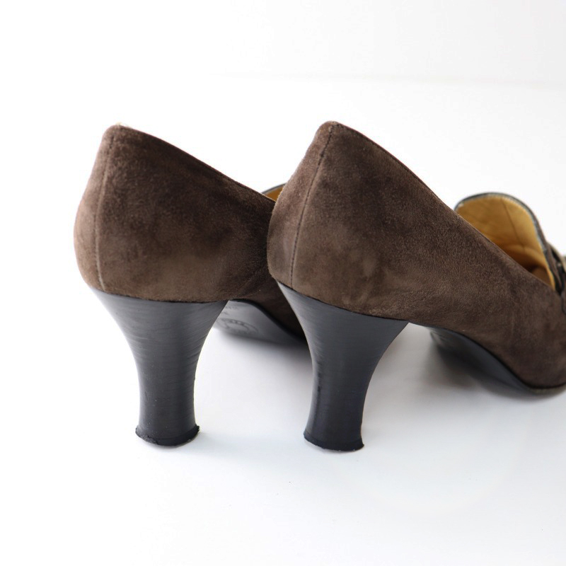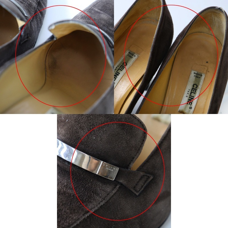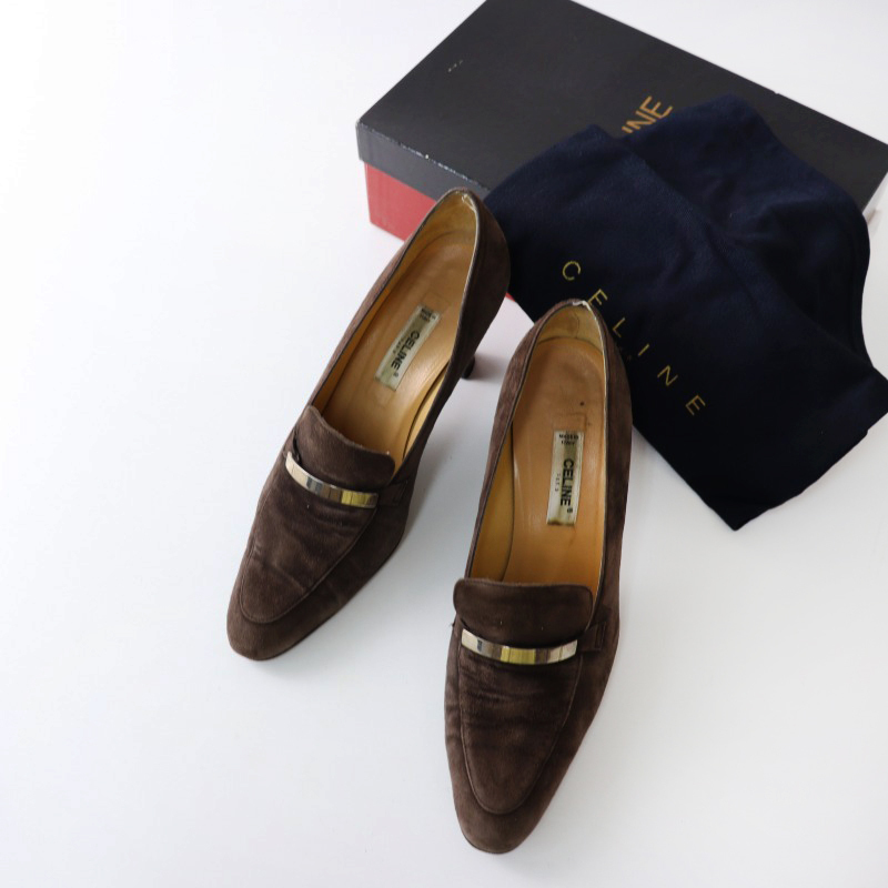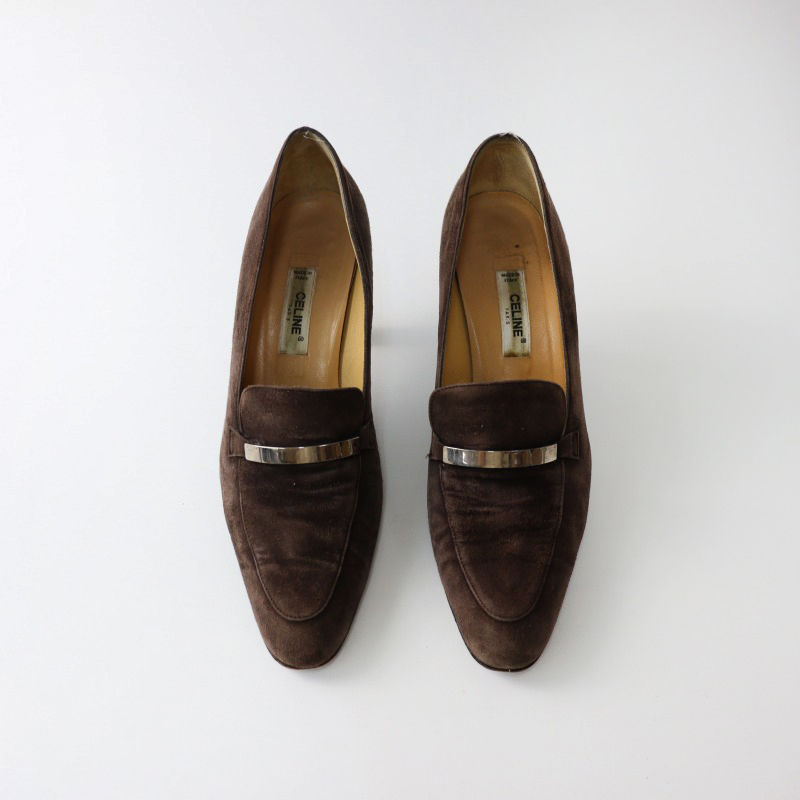 セリーヌ CELINE スエードヒールローファーパンプス 38/ダークブラウン 25.0cm シューズ レザー ヴィンテージ【2400014510904】