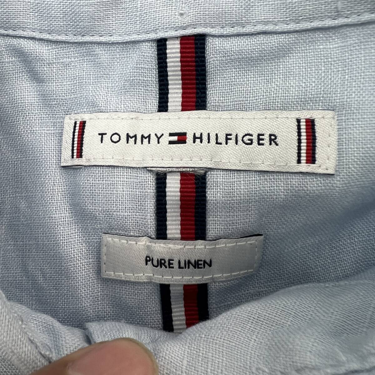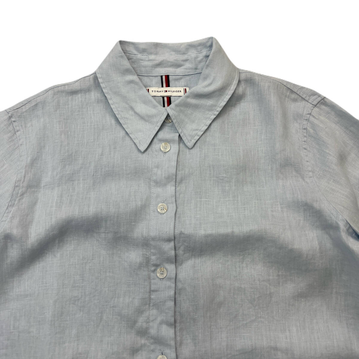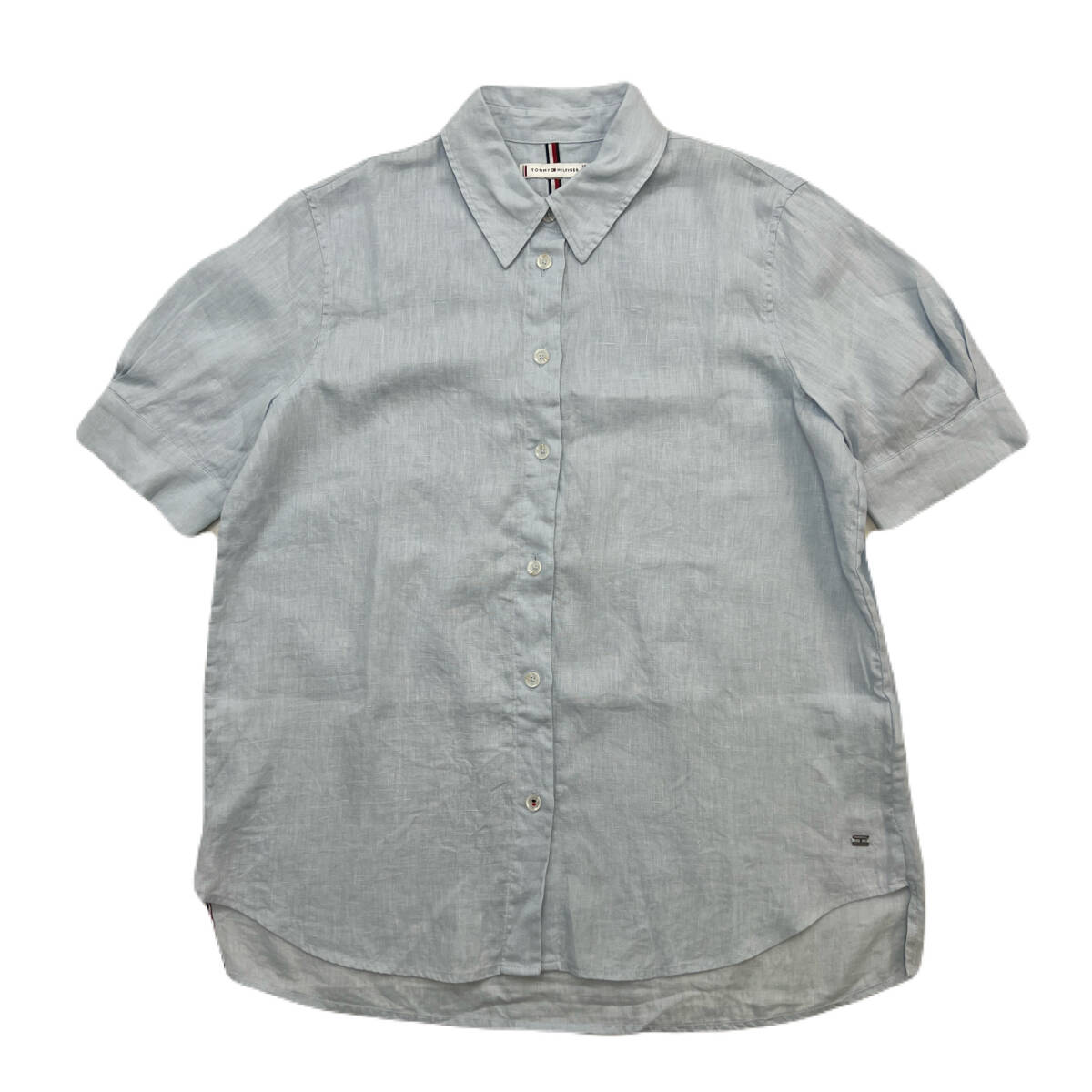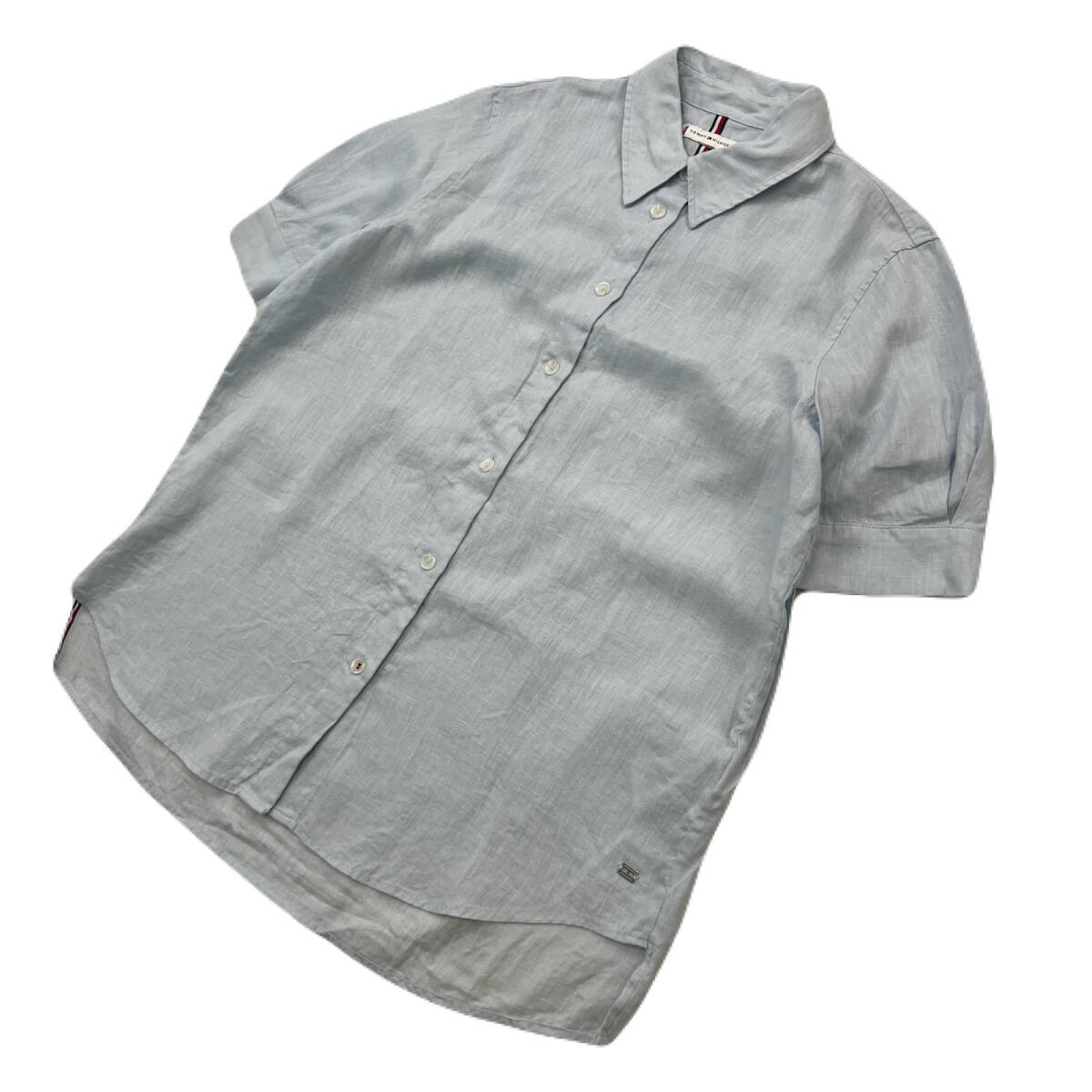 トミー ヒルフィガー 半袖シャツ リネン 麻 ライトグレー レディース ML相当 【 かわいいデザインの好アイテム 】 TOMMY HILFIGER ●DK279