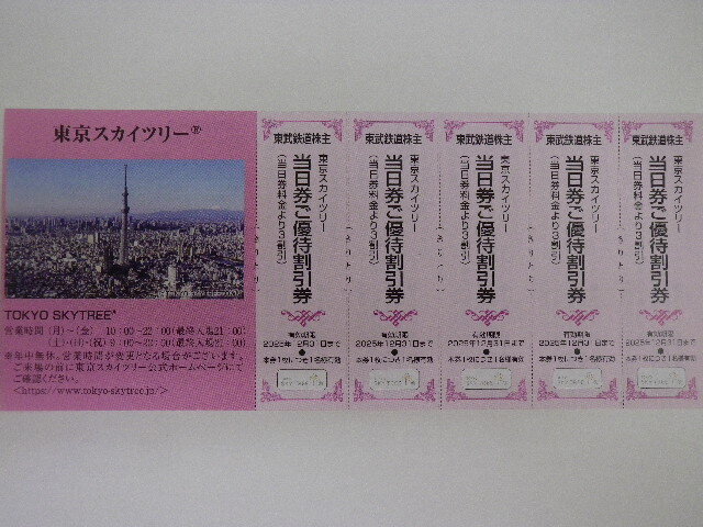 最新 東武鉄道 株主優待 東京スカイツリー割引券 5枚セット 即決 | ||