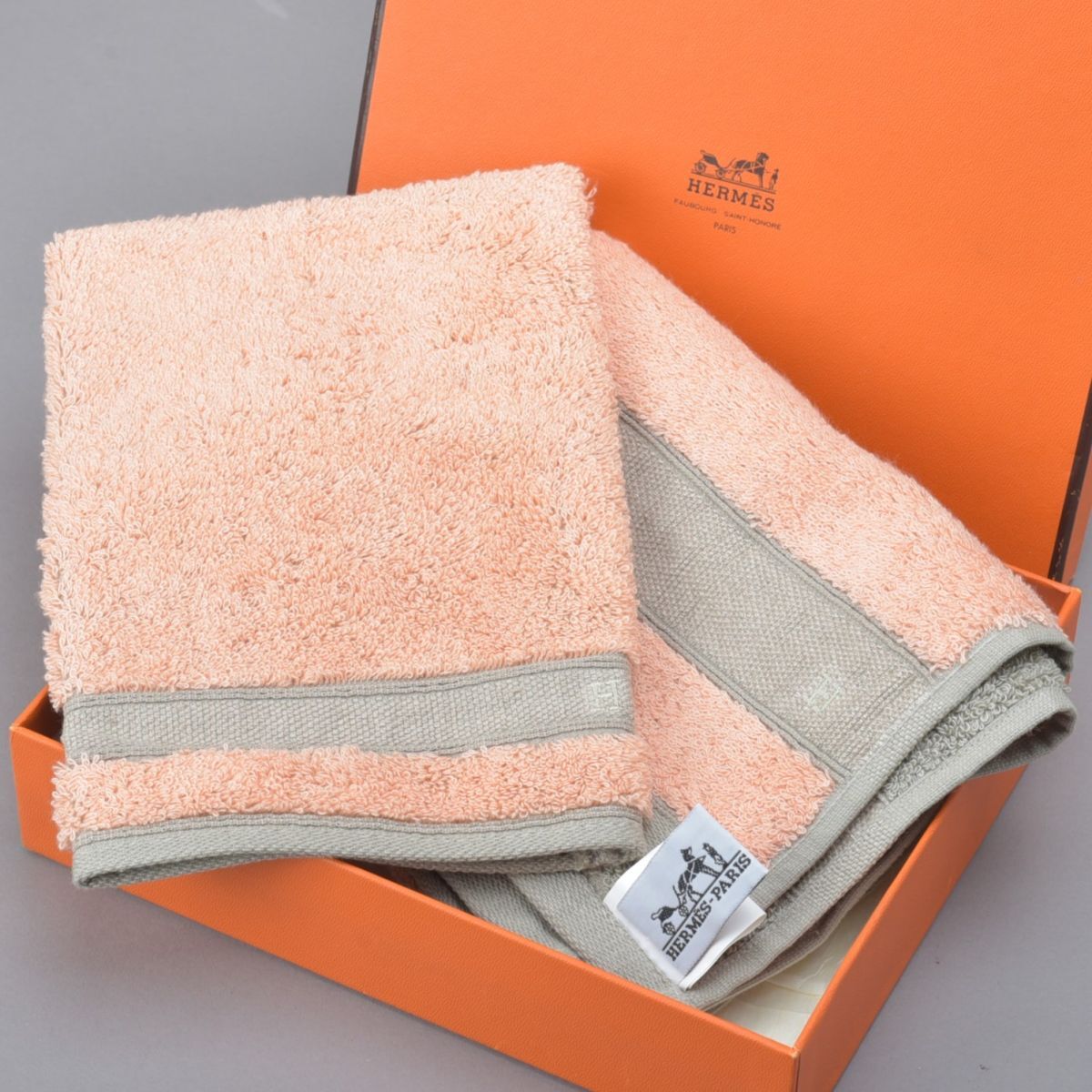 新品 エルメス タオル バスミトン 2点セット Hロゴ サーモンピンク グレー