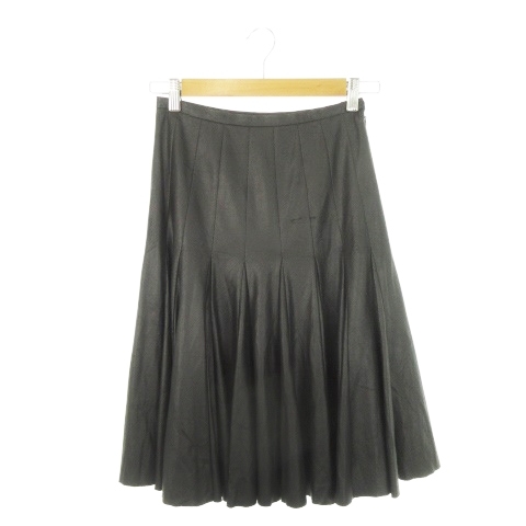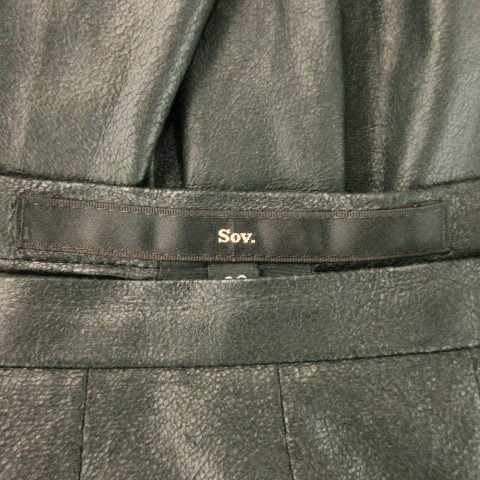 ソブ sov. ダブスタ フレアスカート フェイクレザー ひざ丈 カットオフ 36 S 黒 ブラック /AH14 ■GY43 レディース