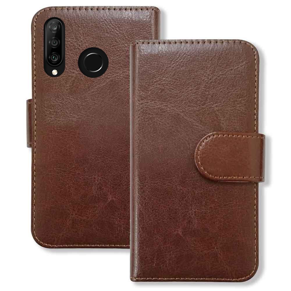 Huawei P30 lite Premium HWV33 P30 lite スマホケース(手帳ブラウン)手帳型 PUレザー 無地 ケース ダイアリータイプ 横開き カード収納 カバー
