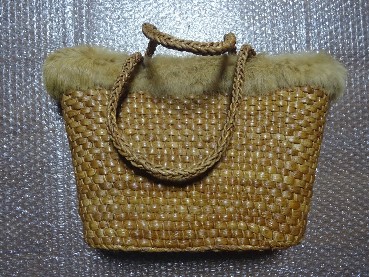 訳あり☆ファー付きカゴバック トートバッグ 籠バック かごバック レディース
