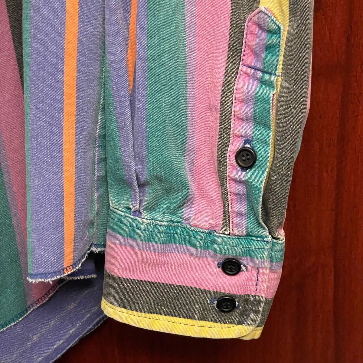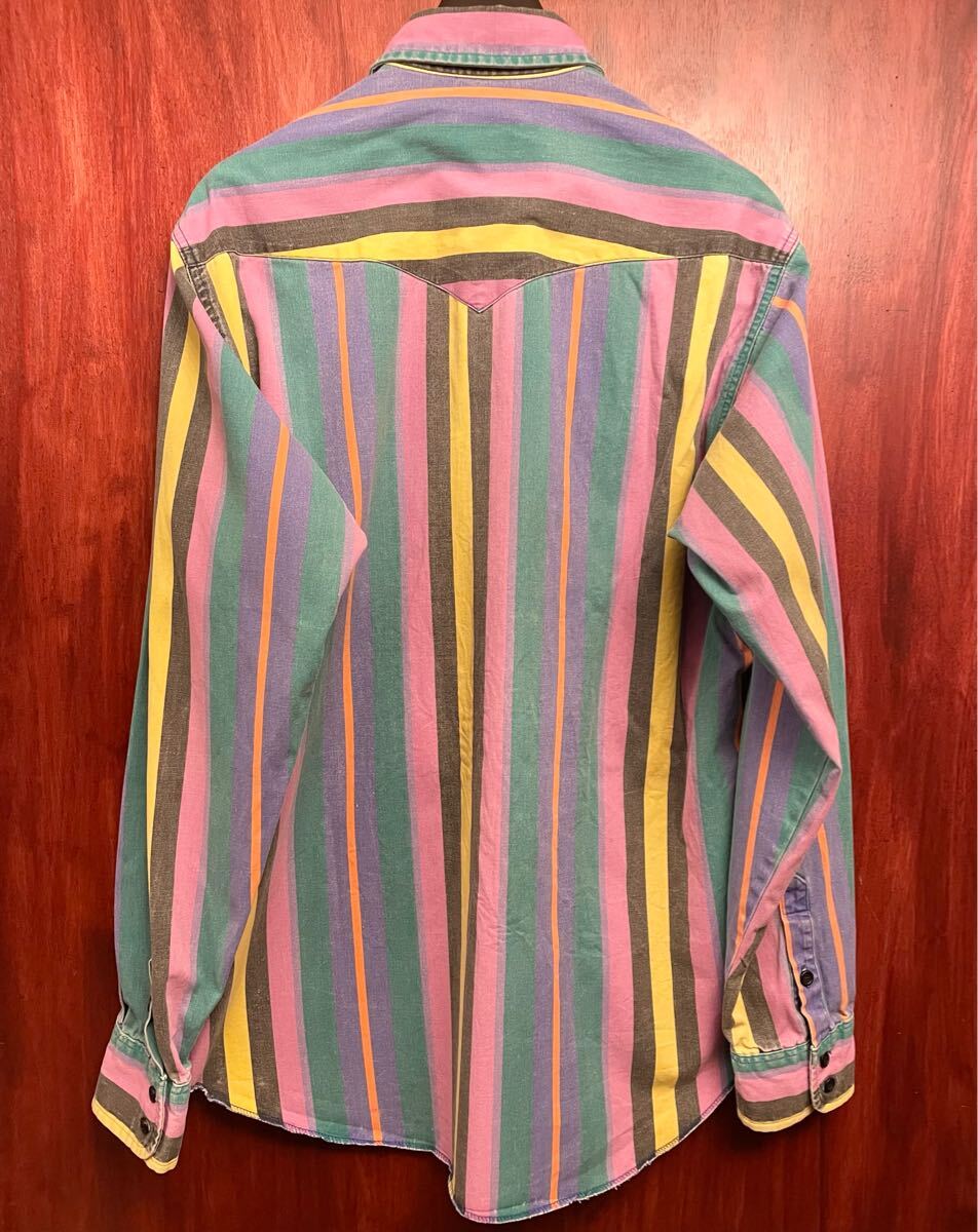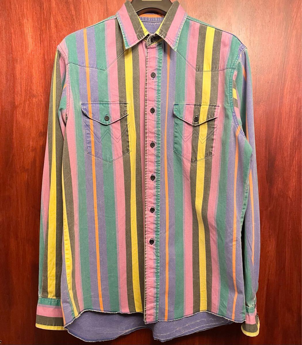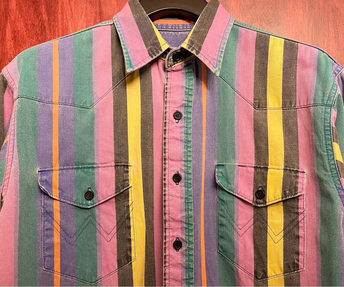 ウエスタンシャツでは珍しいマルチカラーのストライプ柄に、胸ポケットにさりげなく入ったブランド名の頭文字のWが入ったオシャレなおすすめの一品です。
