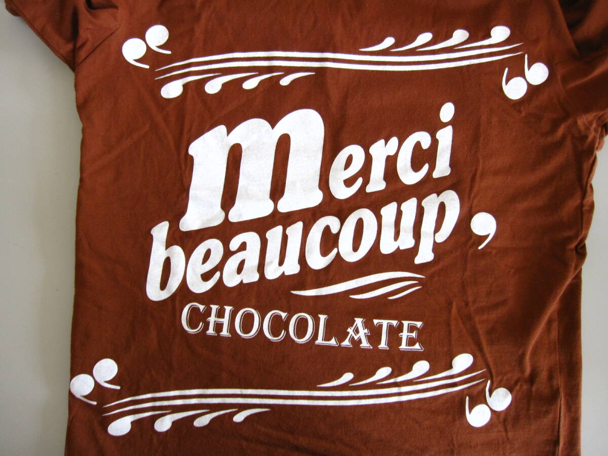 ・商品の説明 | メルシーボークーのチョコレート・デザインのTシャツです。 綿100%です。 |