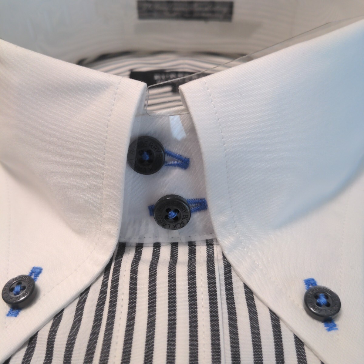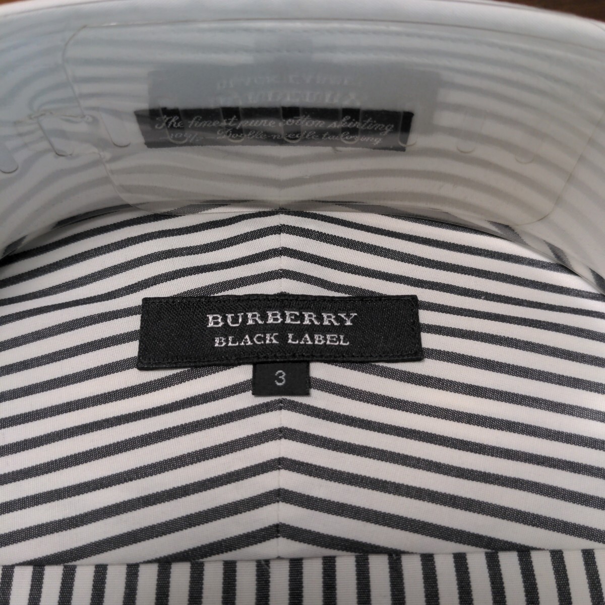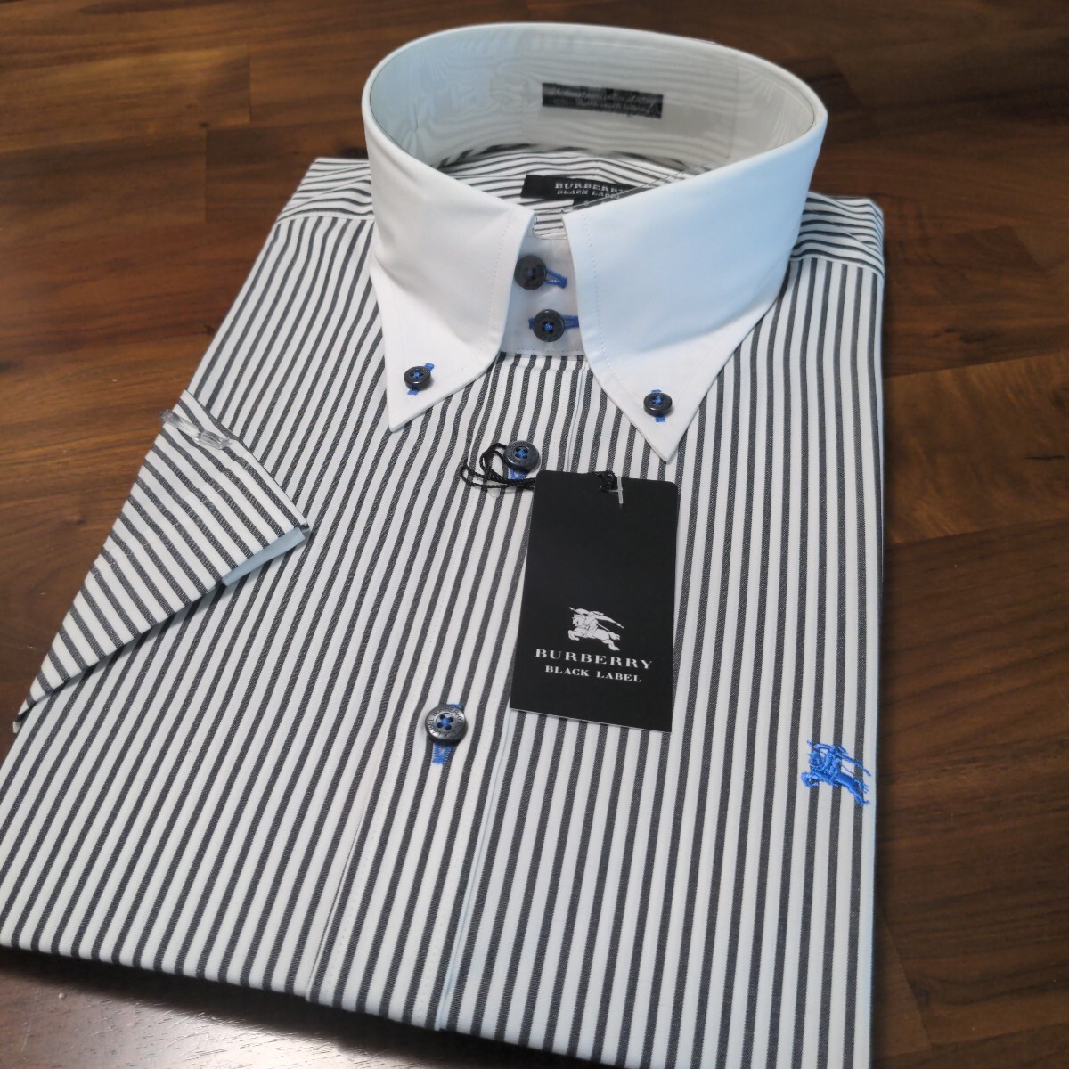 ★2015年にブランドとしての生産を終了したバーバリーブラックレーベルの中でも人気を誇るクレリック&ストライプ柄仕様のシャツ。ホワイト生地にシンプルな縦縞ストライプ柄、襟元廻りはドゥエボットーニタイプで胸元のライトブルーナイトホースマークがカジュアル&ビジネスシーンで然り気無いお洒落を演出します。稀少な新品未使用品は現品限りの1着となります。