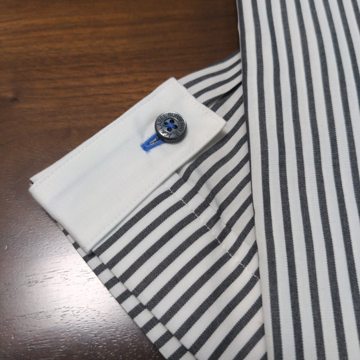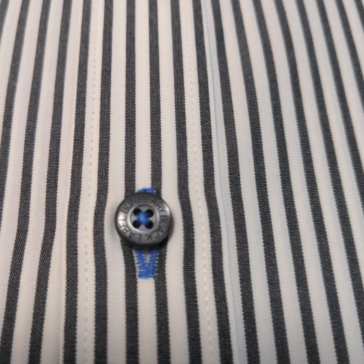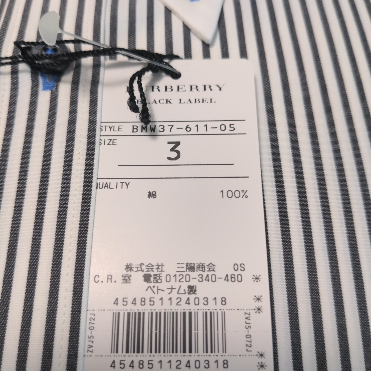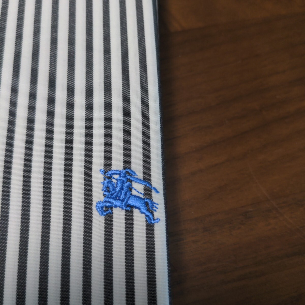 ★2015年にブランドとしての生産を終了したバーバリーブラックレーベルの中でも人気を誇るクレリック&ストライプ柄仕様のシャツ。ホワイト生地にシンプルな縦縞ストライプ柄、襟元廻りはドゥエボットーニタイプで胸元のライトブルーナイトホースマークがカジュアル&ビジネスシーンで然り気無いお洒落を演出します。稀少な新品未使用品は現品限りの1着となります。