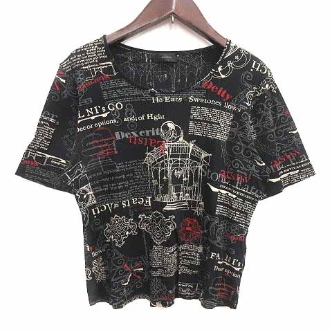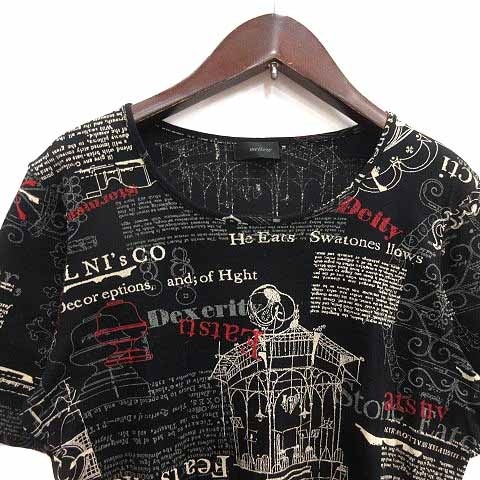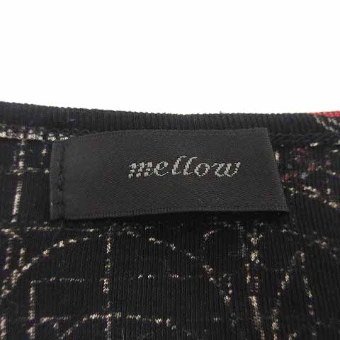 メロウ mellow ニット カットソー 総柄 半袖 M~L 黒 ブラック /YK ●RY レディース