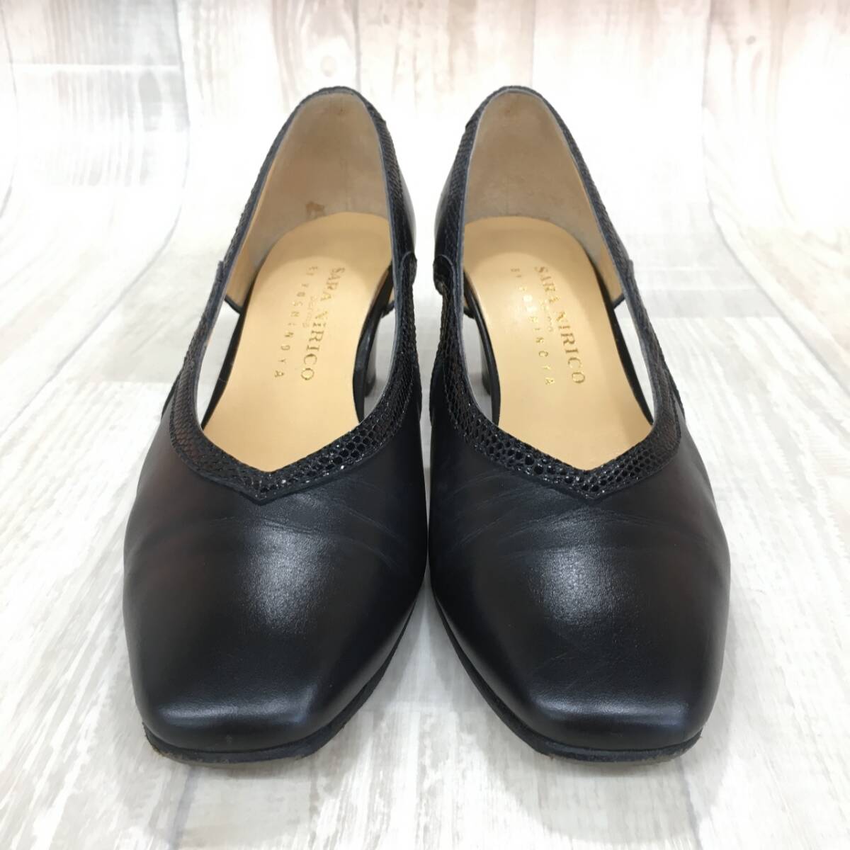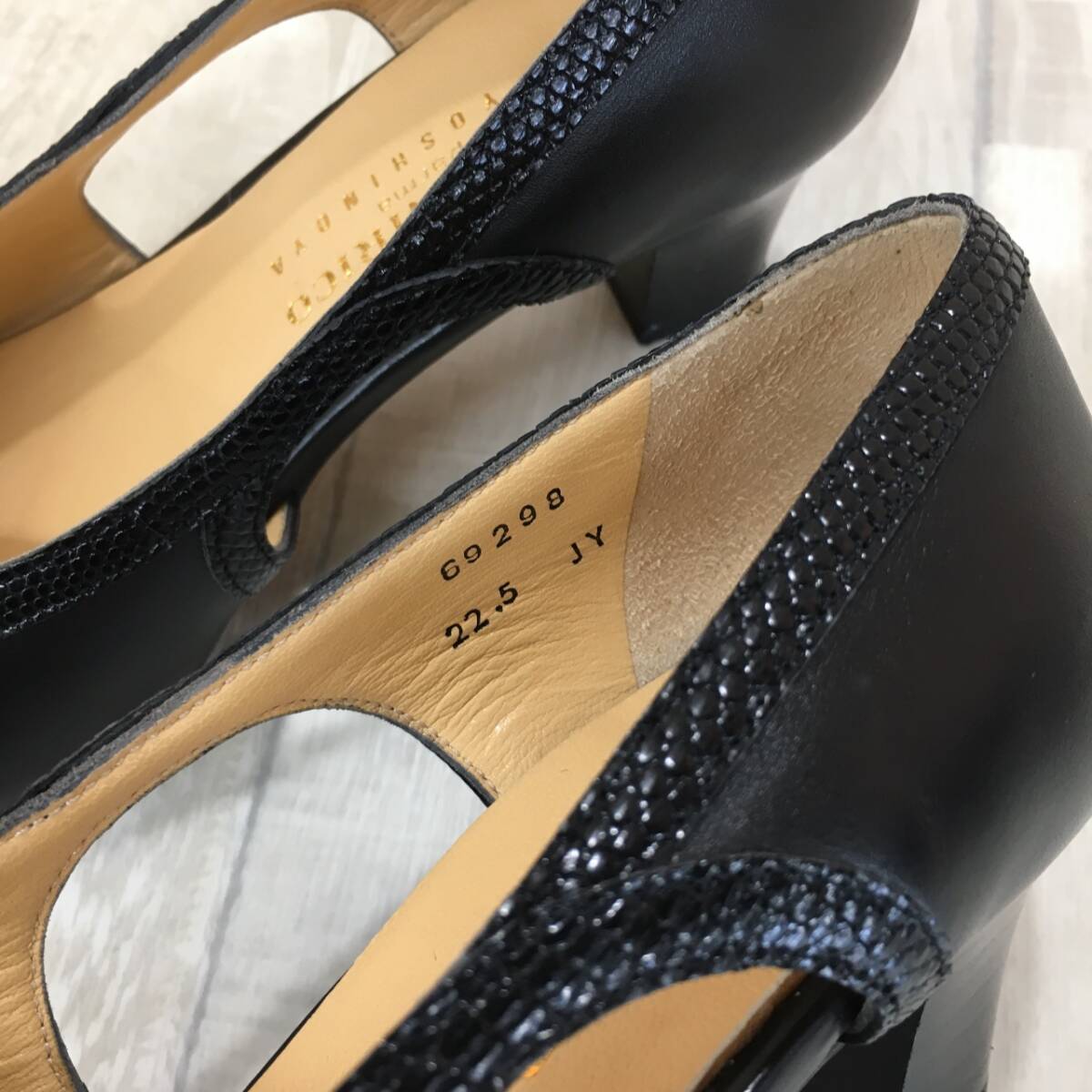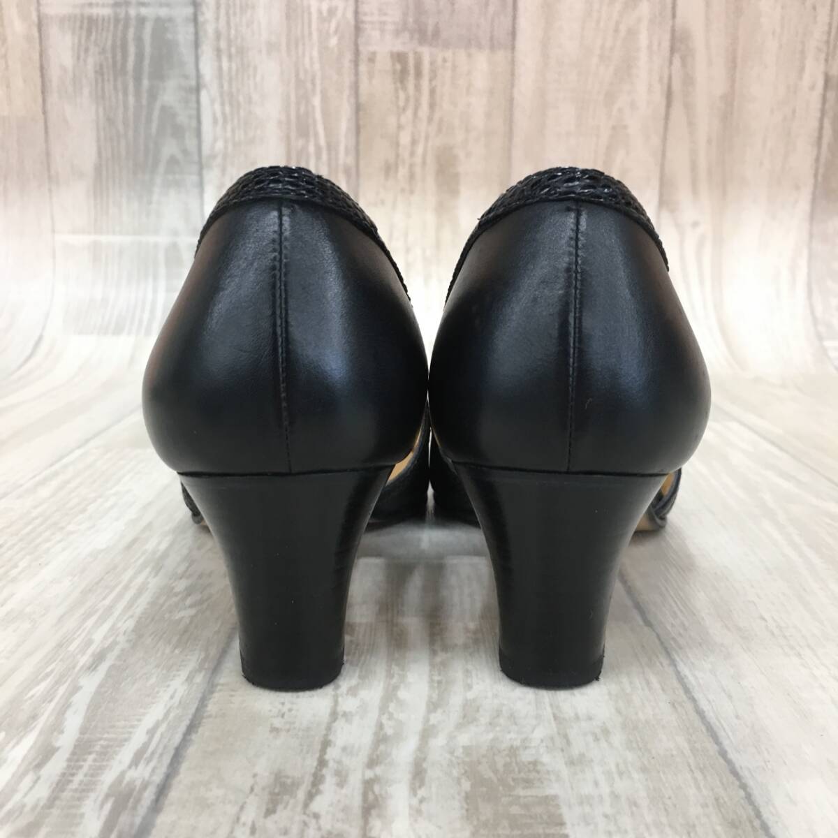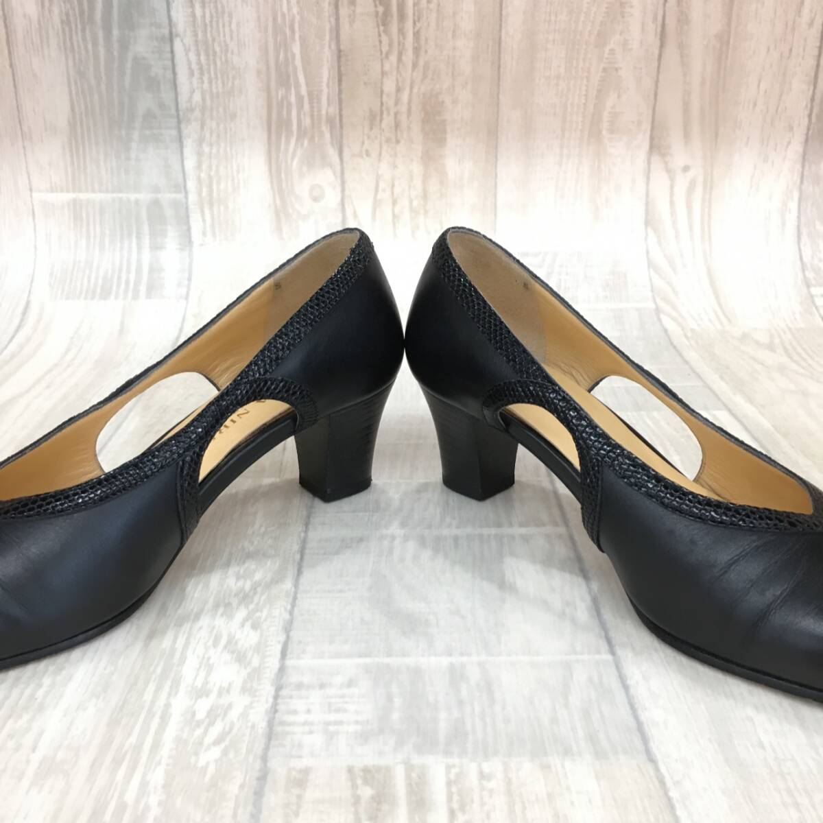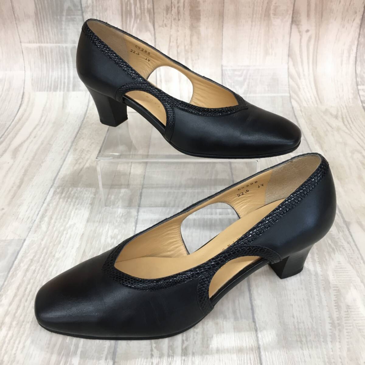 NZ1755●SARA NIRICO by YOSHINOYA レザー パンプス●22.5●ブラック 切替 カットデザイン 銀座ヨシノヤ サラニリコ