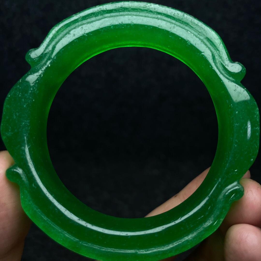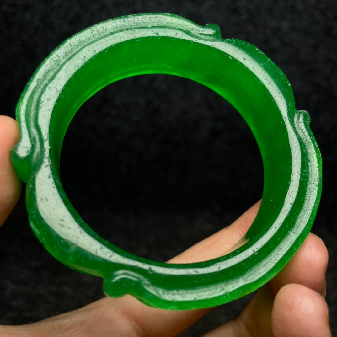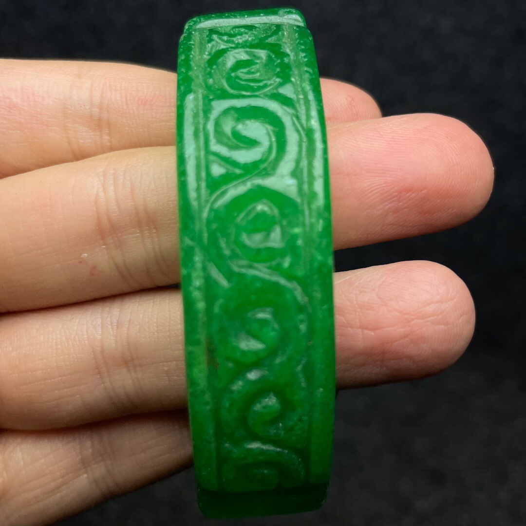 ▽鴻▽ 翡翠製 細密彫 腕輪一對 箱付 根付 裝身具 古賞物 古董品 時代物 稀少珍品 中国古玩 中国古美術
