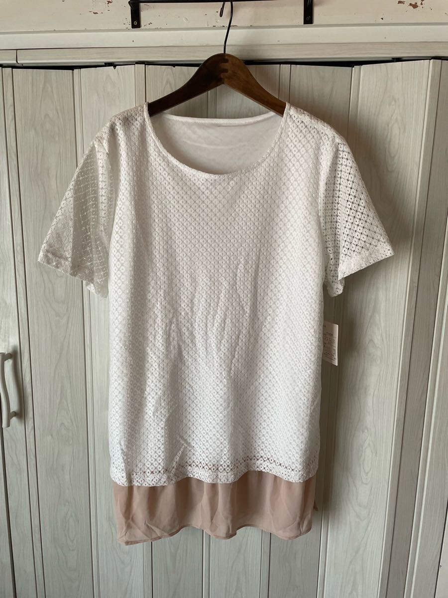 ◆FEEL OF NEW/総レース裾シフォン半袖チュニック/新品◆x
