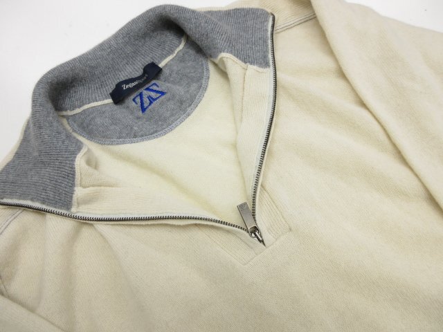 HH【ZegnaSport ゼニアスポーツ】カシミア×ウール ハーフジップニット セーター (メンズ) sizeS ライトベージュ系 ◯17MN5927◯