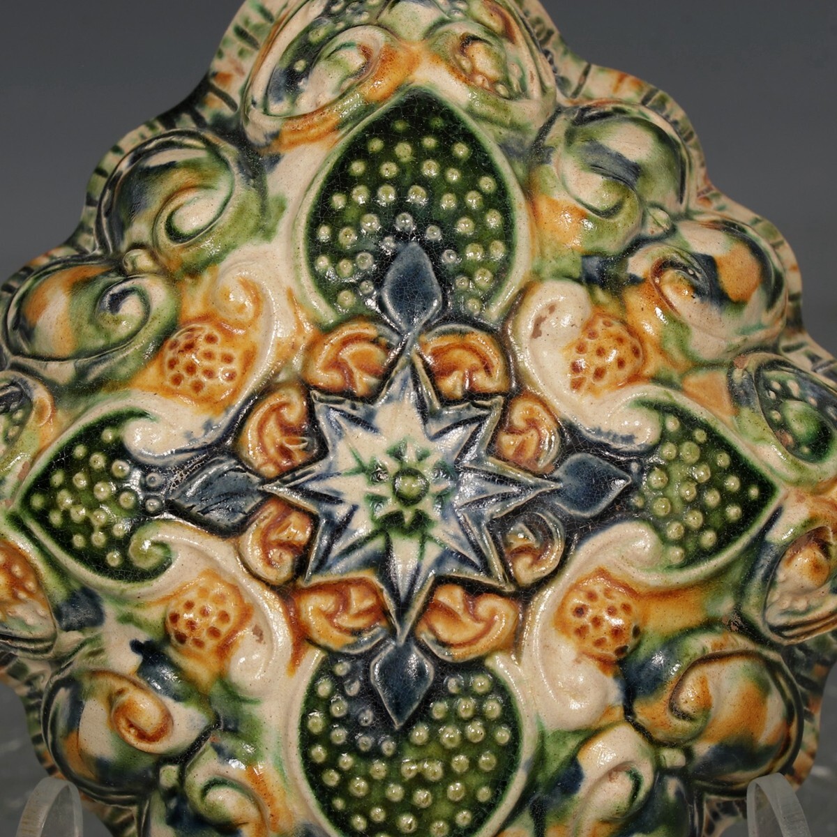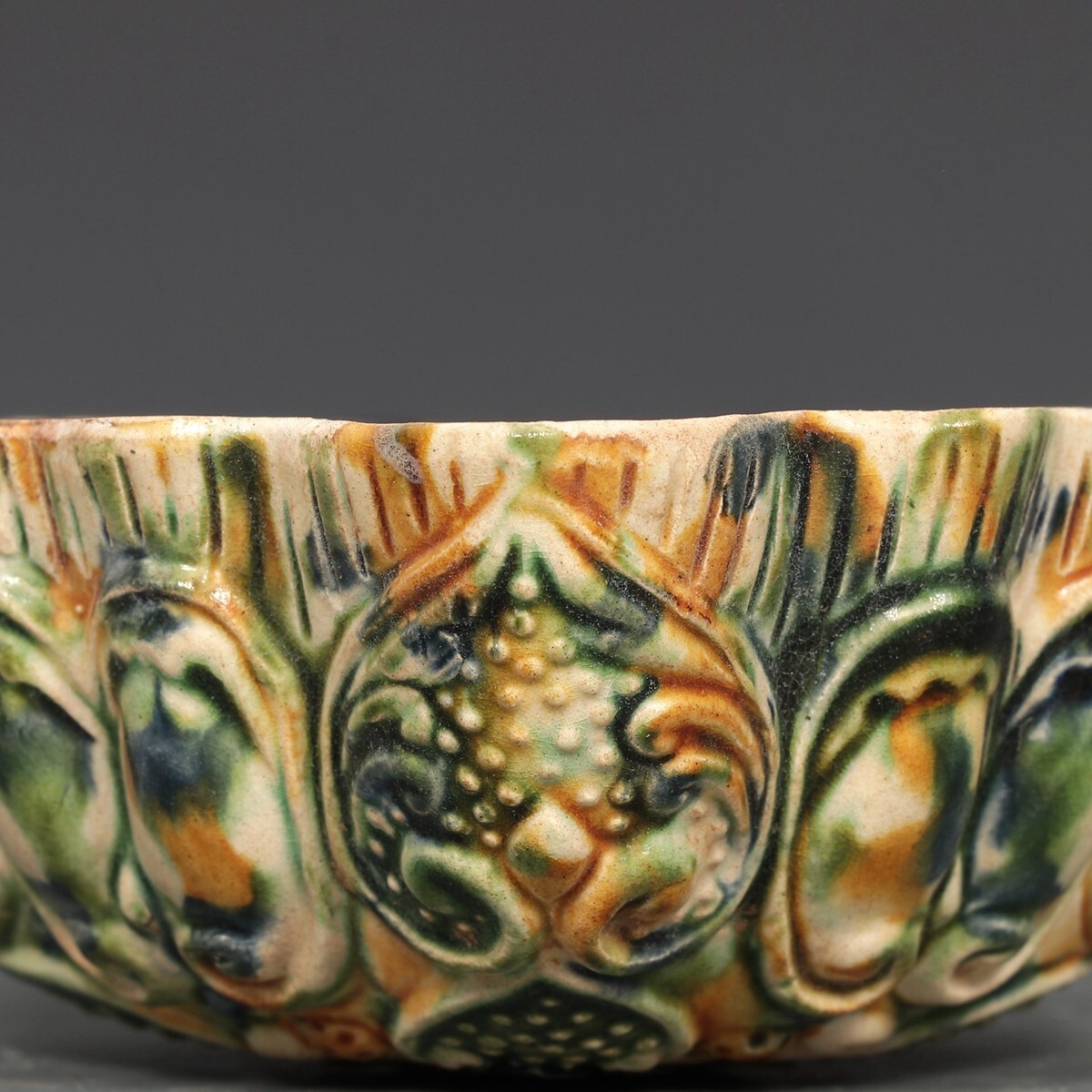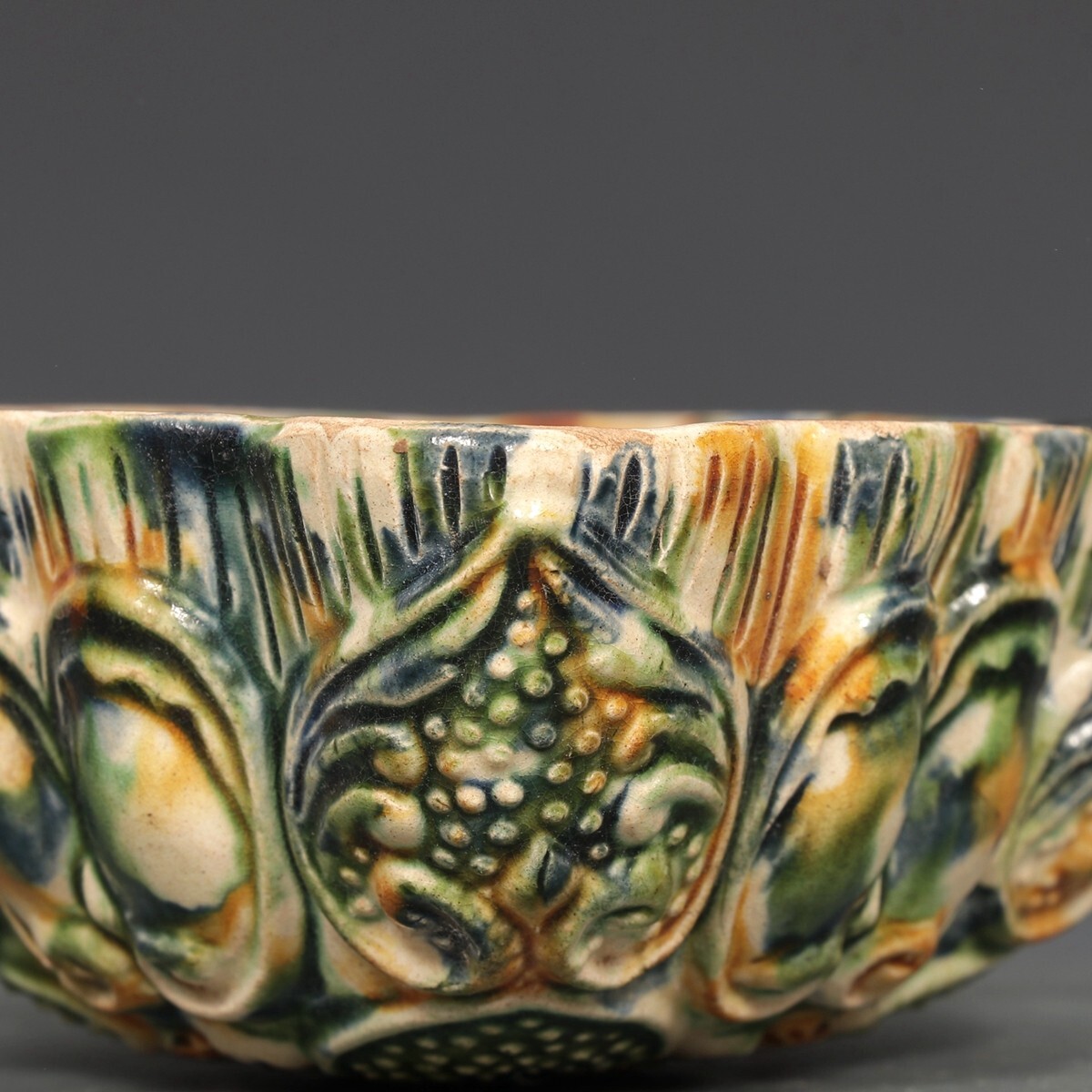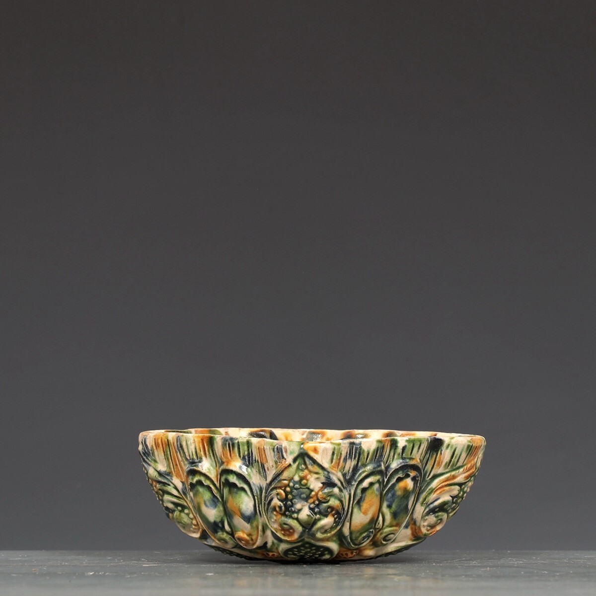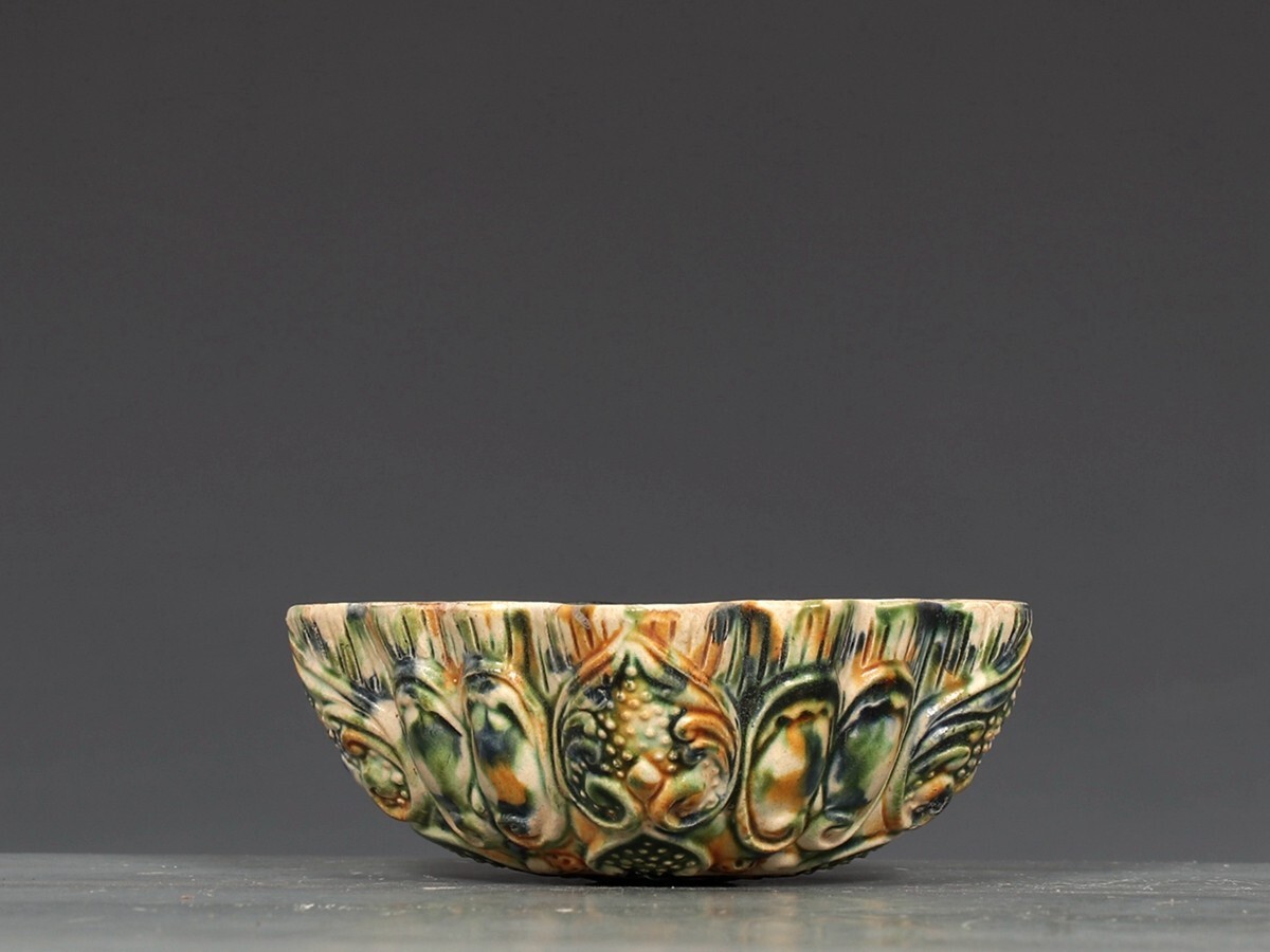 唐代 鞏県窯 陶磁器 三彩花口水洗【仁】染付 置物擺件 古賞物 古美術 中国古玩 蔵出