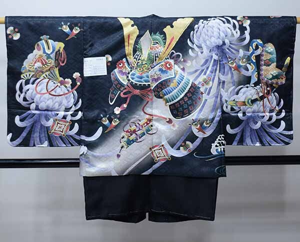 サイズ | ■羽織丈約59cm 裄丈約53cm 袖丈約48cm 着物丈約73cm 適合身長95cm~118cm ※着丈=背中首のゴリゴリ部分から、足くるぶしまでの長さ ※裄丈=腕を斜め45度下げた状態で、背中首ゴリゴリ部分から、肩上を通して、手くるぶしまでの長さ |
